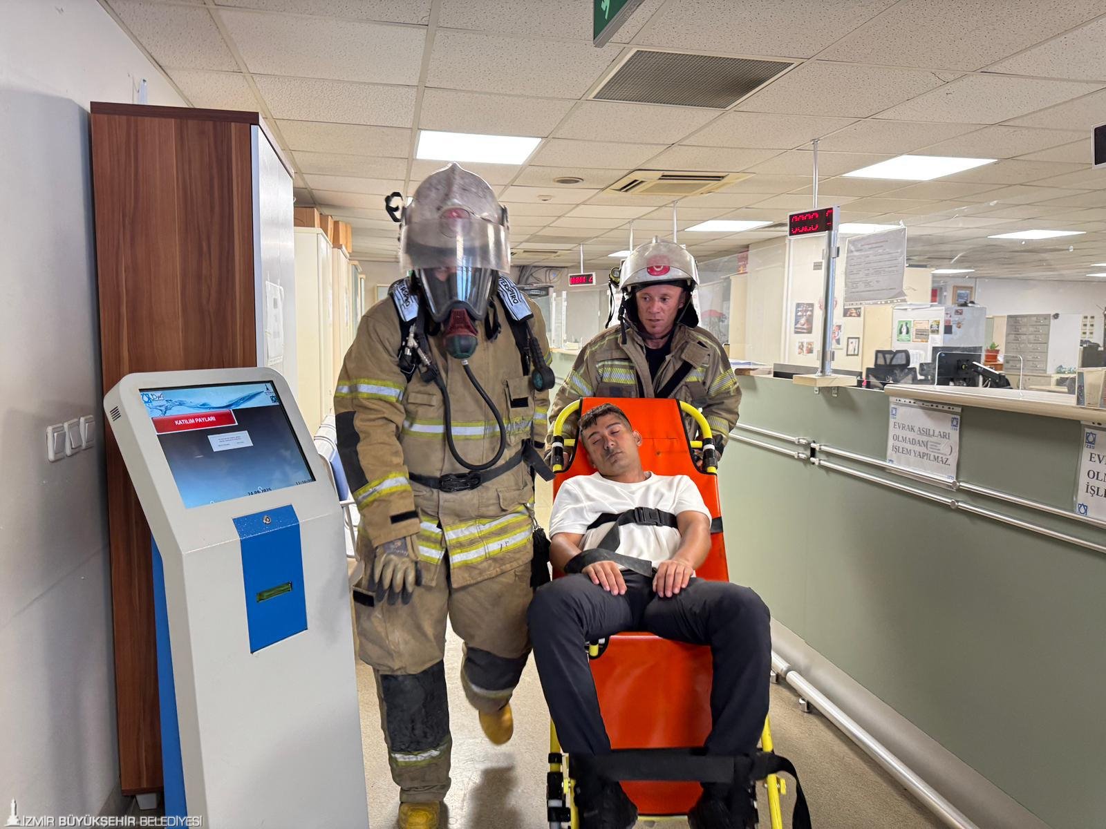 İtfaiye Haftası etkinlikleri kapsamında İzmir Büyükşehir Belediyesi İtfaiye Daire Başkanlığı, İZSU Genel Müdürlüğü Afet ve Acil Durum Yönetimi Birimi iş birliği ile Konak’taki 8 katlı İZSU Genel Müdürlüğü binasında yangın söndürme, tahliye ve kurtarma tatbikatı gerçekleştirdi. Tatbikat senaryosuna göre binanın ikinci katındaki santral odasında yangın çıktı. Santral görevlisi yangına müdahale etmeye çalıştı ancak başarılı olamayınca durumu İZSU acil durum ekiplerine bildirdi. Ekipler, 112 Acil Çağrı Merkezi’ne haber verdi. İhbar üzerine İzmir İtfaiyesi, 2 AKS aracı, 1 merdivenli araç, 2 arazöz ve 1 kurtarma aracıyla hızla olay yerine sevk edildi.