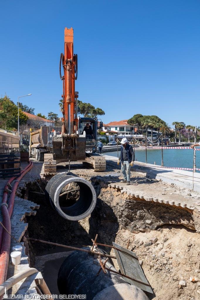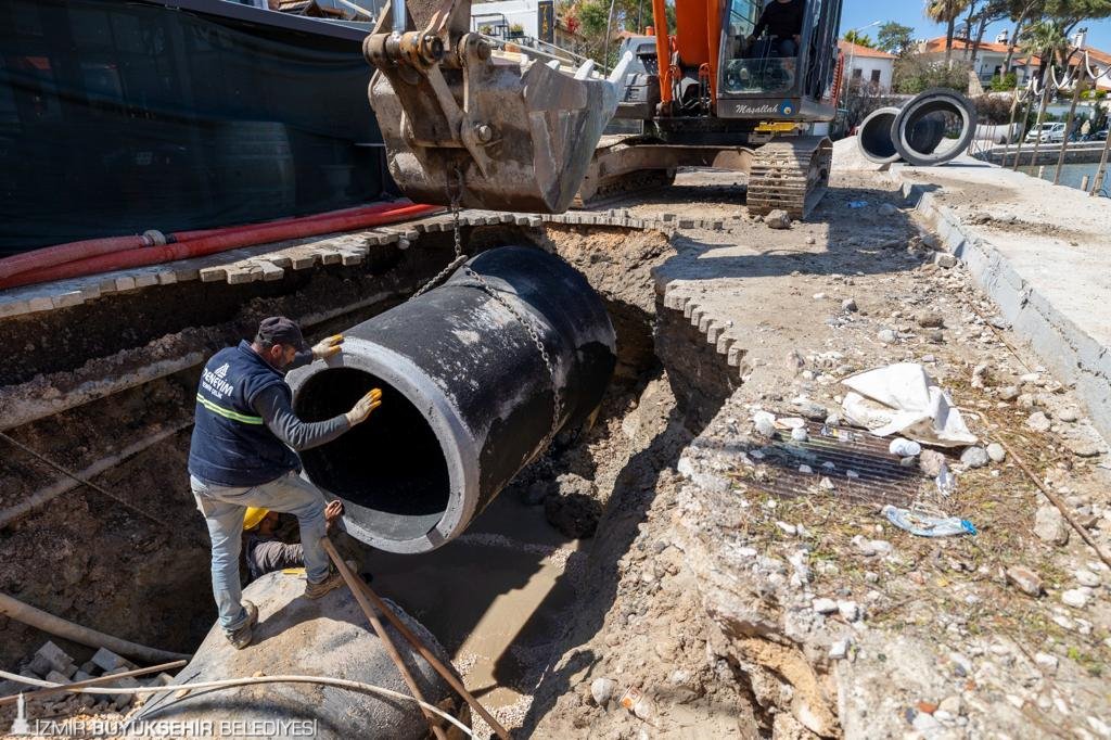Çeşme’de özellikle yaz dönemlerinde artan nüfusla birlikte içme ve kullanma suyuna yönelik talebin de artması üzerine İZSU Genel Müdürlüğü büyük çaplı yatırımlara imza atıyor. İlçenin eskiyen kanalizasyon altyapısının yaz aylarında yoğunlaşan nüfusun ihtiyacını karşılayabilmesi için hazırladığı 17,5 kilometrelik kanalizasyon hattının yapım çalışmalarında sona yaklaşıldı. Projelendirilen imalatın yüzde 84’lük kısmını tamamlayan ekipler, Mayıs’ta hattın tamamını işletime alacak.