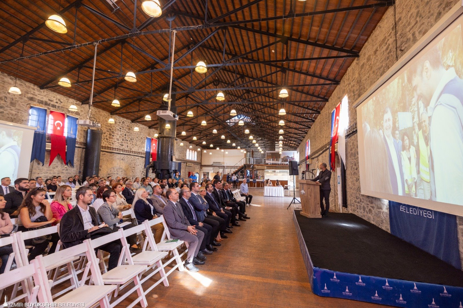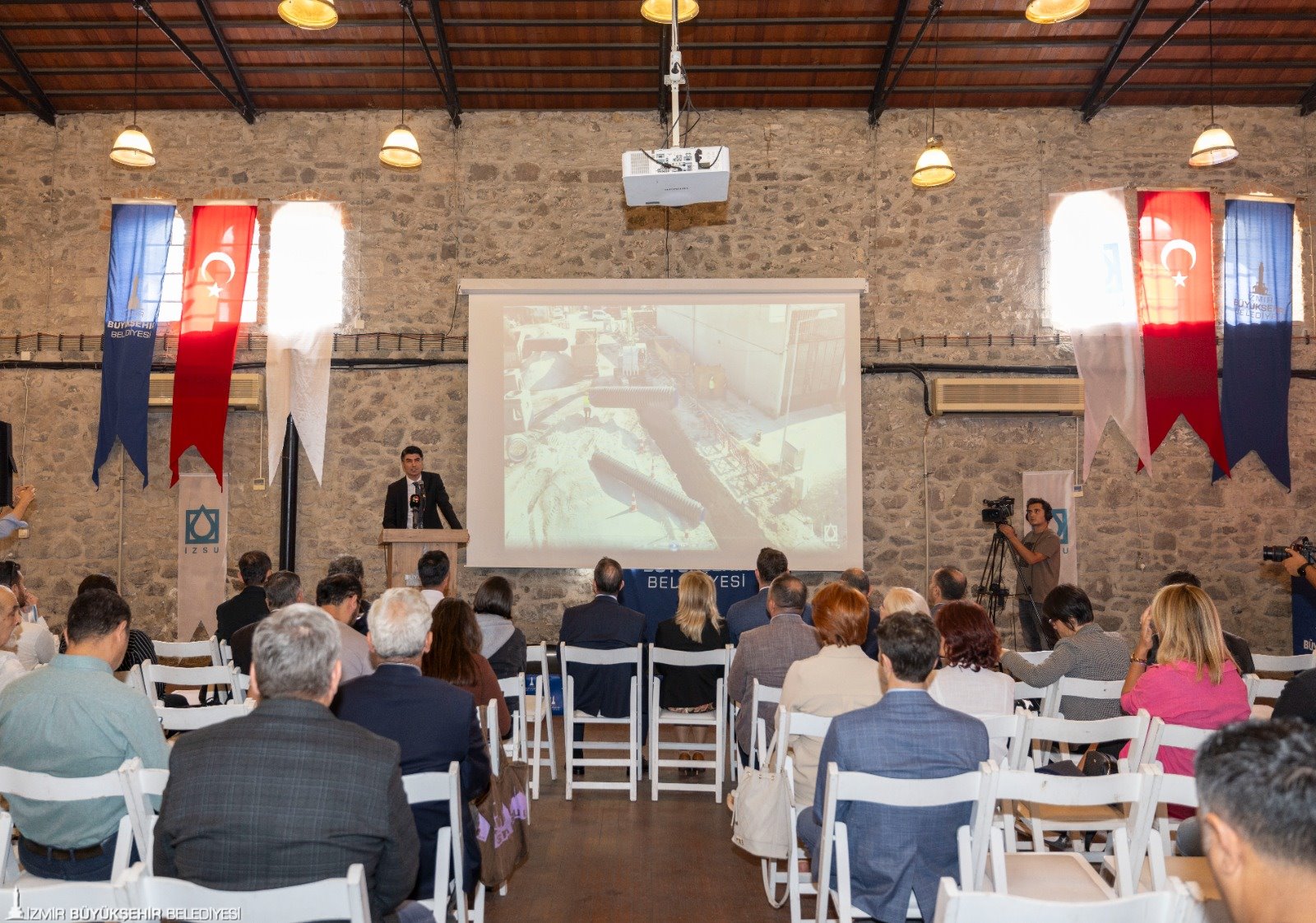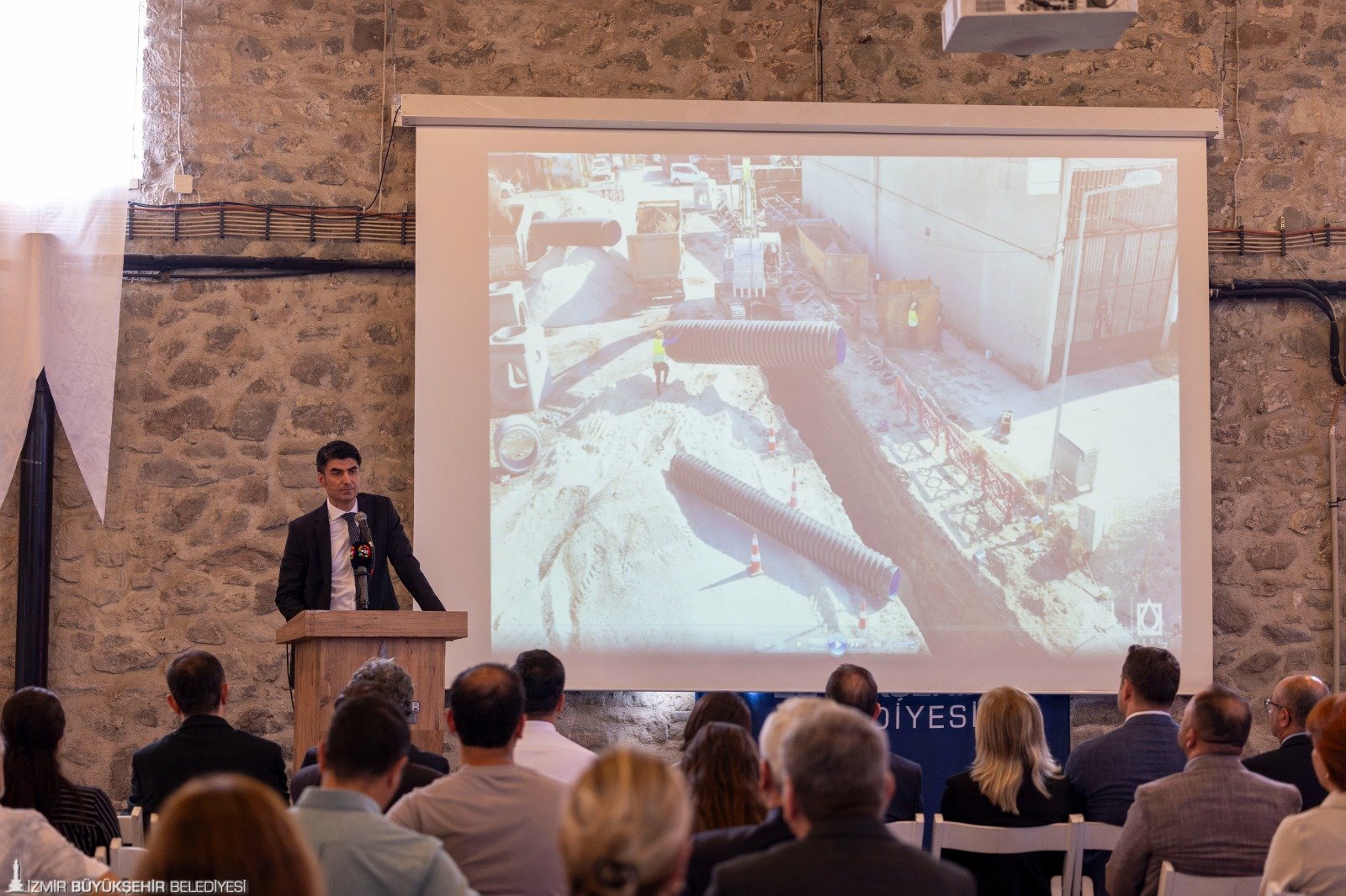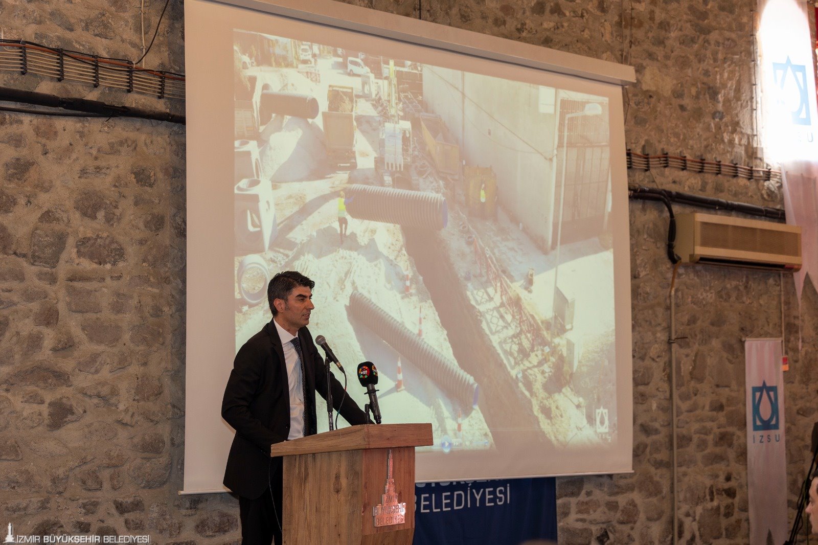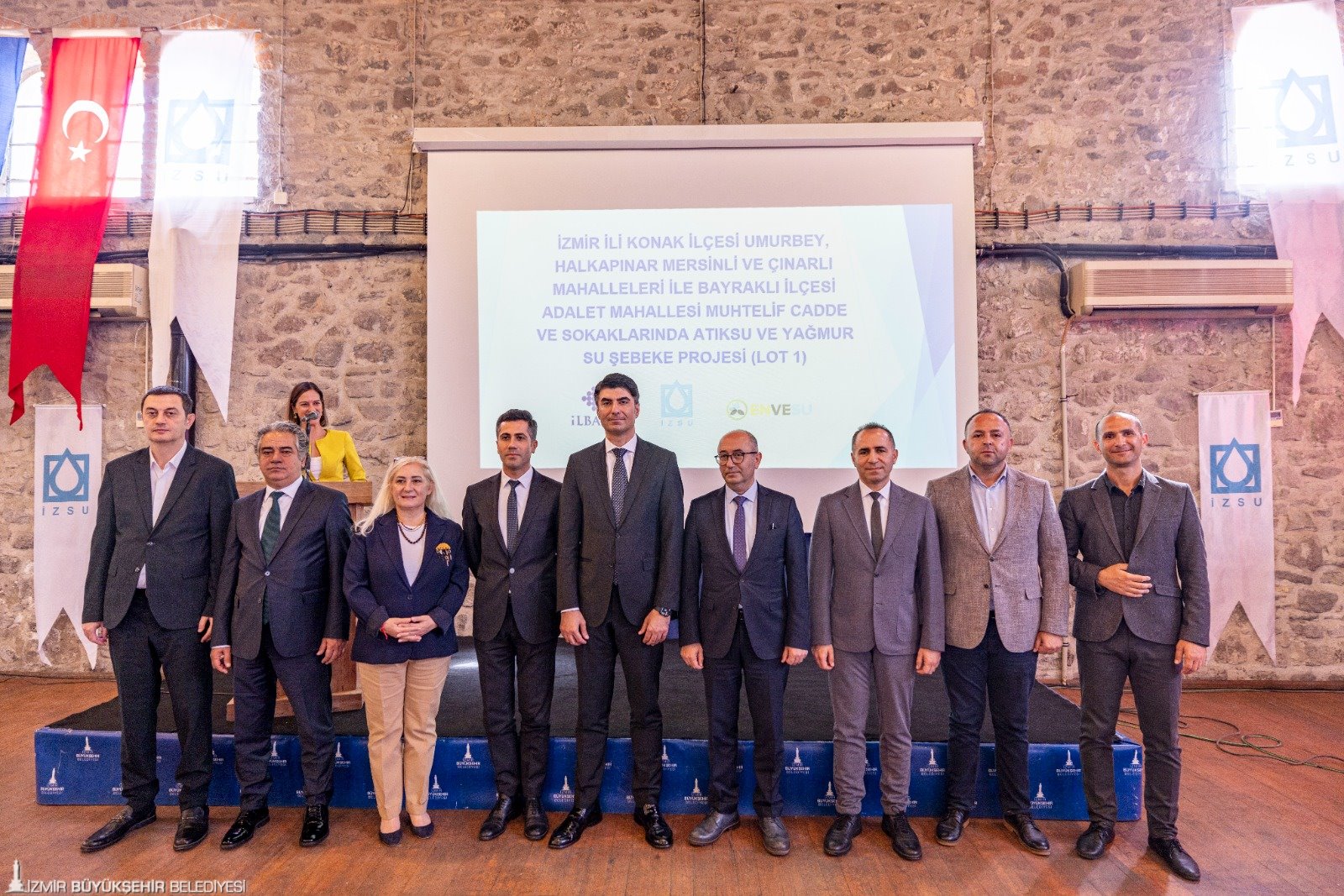 İzmir Büyükşehir Belediyesi İZSU Genel Müdürlüğü, tarafından gerçekleştirilecek tarihi alt yapı yatırımlarından “Konak İlçesi Umurbey, Halkapınar, Mersinli ve Çınarlı Mahalleleri ile Bayraklı İlçesi Adalet Mahallesi Yağmur Suyu ve Kanalizasyon İnşaatı Projesi” vatandaşlar ve muhtarlara tanıtıldı. Tarihi Havagazı Fabrikası’nda düzenlenen toplantıya İzmir Büyükşehir Belediyesi Genel Sekreteri Ramazan Tezcan, İzmir Büyükşehir Belediyesi Genel Sekreter Yardımcıları Şükran Nurlu, Çağatay Güç, Zeki Yıldırım, İZSU Genel Müdürü Gürkan Erdoğan ile İZSU Genel Müdür Yardımcıları, bürokratlar, muhtarlar, sivil toplum örgütü ve oda temsilcileri ile vatandaşlar katıldı.