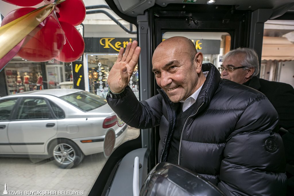 Törenin sonunda İZTAŞIT otobüsleri, kurdele kesilerek hizmete alındı. Başkan Soyer, protokol üyeleri ve vatandaşlar İZTAŞIT'ları şehir turu atarak tanıttı.