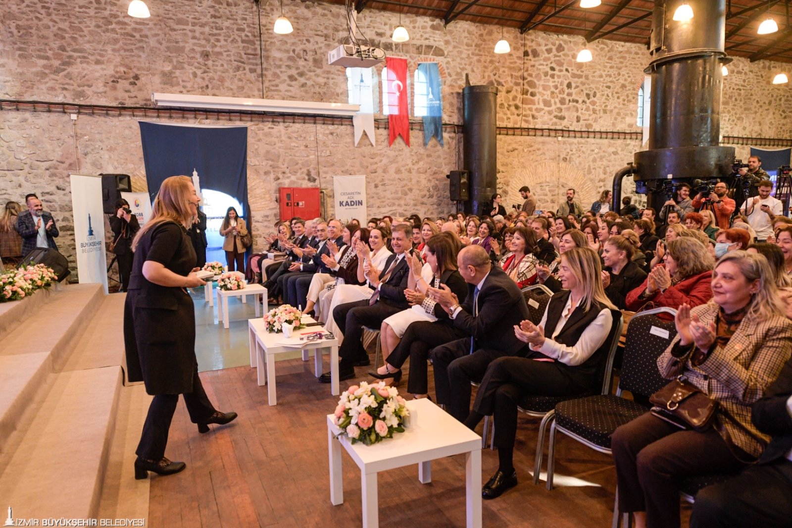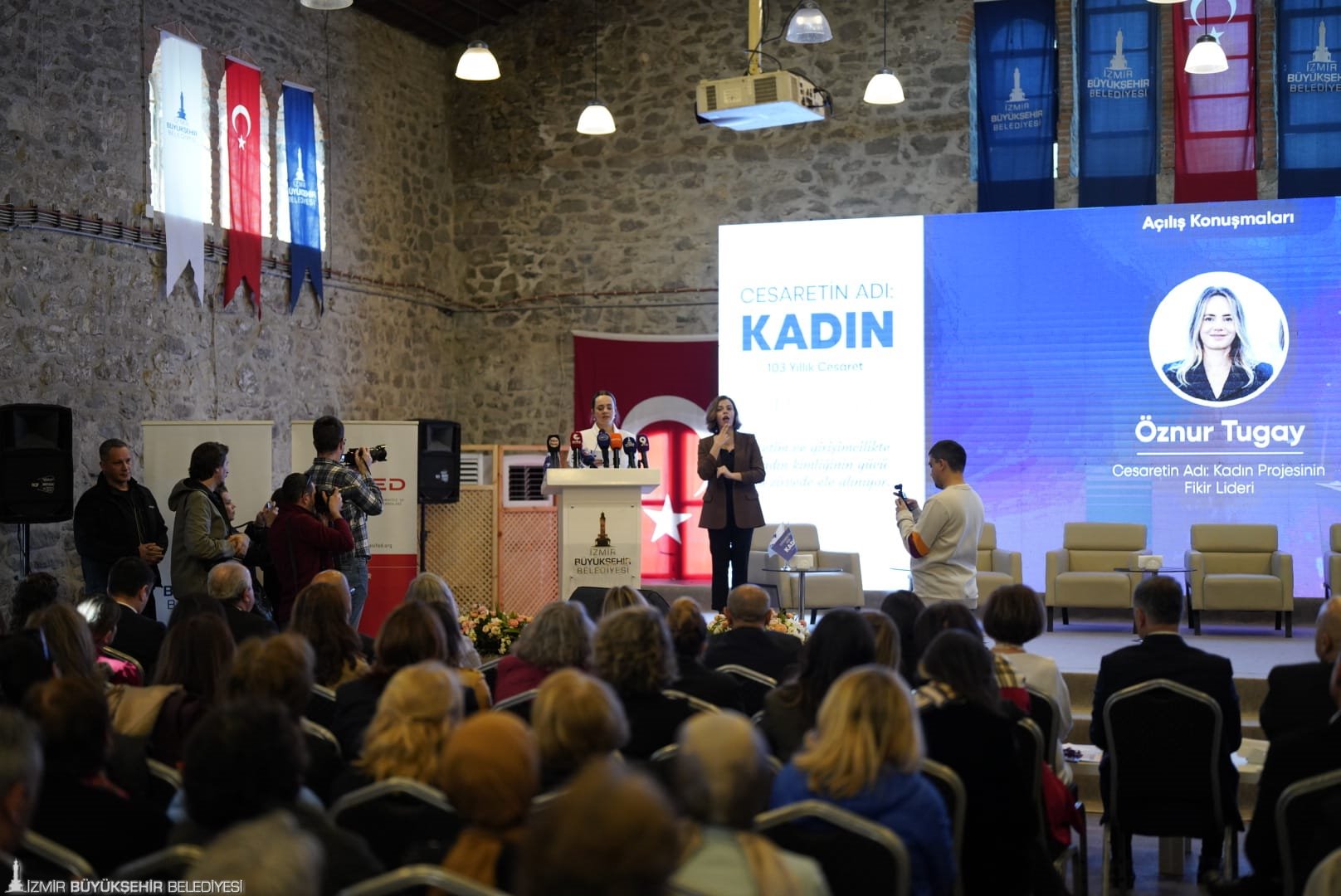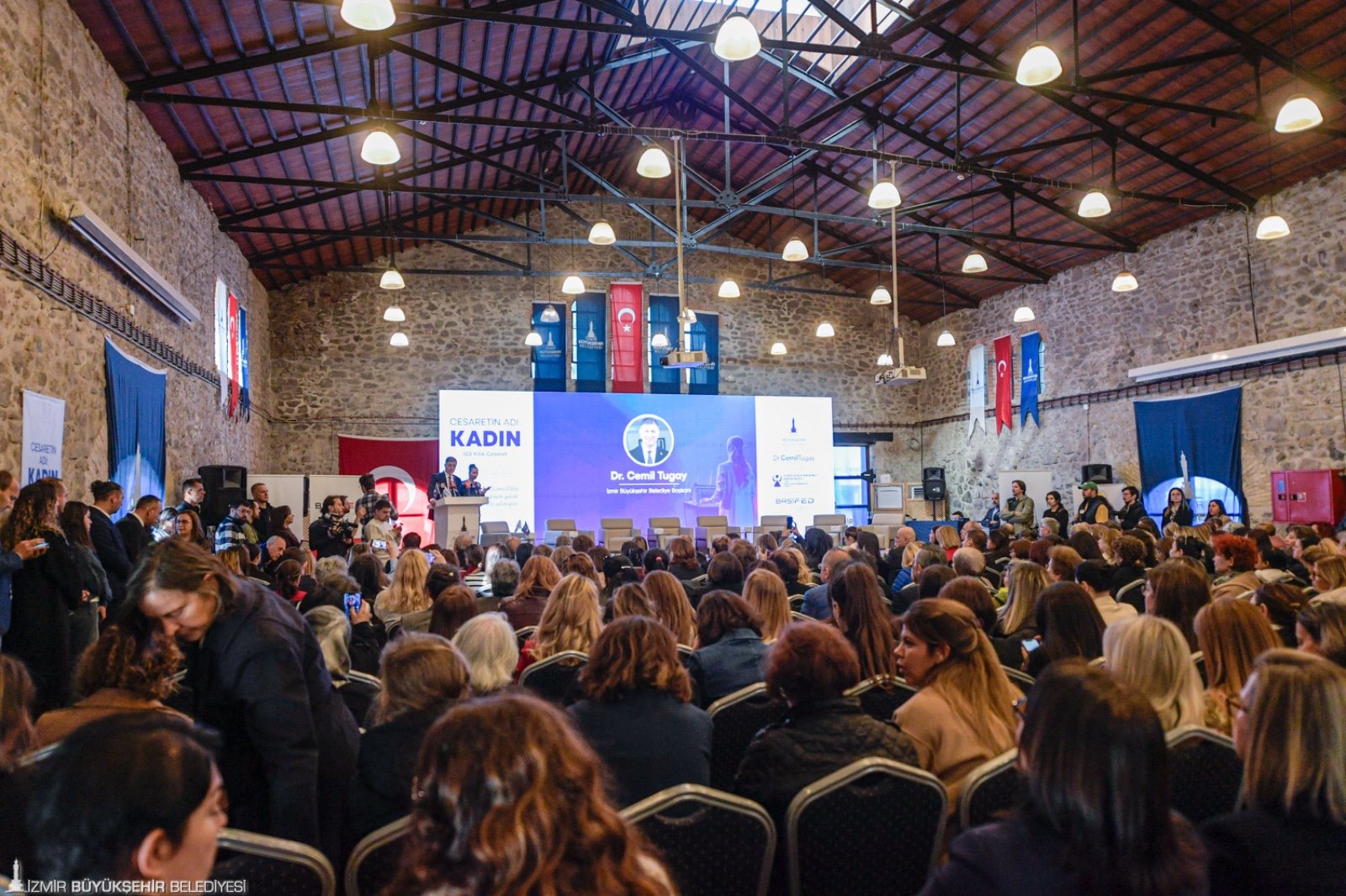 İzmir Büyükşehir Belediyesi, Batı Anadolu Sanayici ve İş İnsanları Dernekleri Federasyonu (BASİFED) ve TOBB İzmir Kadın Girişimciler Kurulu tarafından kadınların ekonomik hayattaki rolünü güçlendirmek ve ilham veren başarı hikâyelerini görünür kılmak amacıyla 8 Mart Dünya Kadınlar Günü kapsamında “Cesaretin Adı: Kadın-103 Yıllık Cesaret” zirvesi yapıldı. İş dünyasının temsilcilerini, kadın girişimcileri, akademisyenleri, sanatçıları, medya mensuplarını ve gençleri aynı çatı altında buluşturan zirvede, kadın girişimciliğinden liderliğe; yapay zekâ ve toplumsal cinsiyet ilişkisinden iş dünyasında ve medyada kadının yerine kadar pek çok önemli başlık ele alındı. Yalnızca ilham veren hikâyeler değil, somut çözüm önerileri, iyi uygulama örnekleri ve iş birliği modellerinin de konuşulduğu programa İzmir Büyükşehir Belediye Başkanı Dr. Cemil Tugay ve zirvenin fikir lideri eşi Öznur Tugay, BASİFED Yönetim Kurulu Başkanı Semiha Güneş, TOBB İzmir Kadın Girişimciler Kurulu Başkanı Deniz Celep, İzmir Büyükşehir Belediyesi Başkan Vekili Dr. Zafer Levent Yıldır ile İzmir Büyükşehir Belediyesi Genel Sekreter Yardımcısı Prof. Dr. Pınar Okyay da katıldı. Zirve; iş dünyası, girişimcilik, sanat, medya ve sivil toplum alanlarında ülkemize değer katan pek çok önemli ismin katkı sunduğu panellerle devam etti.
