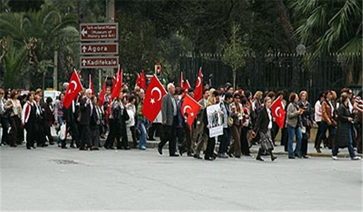 Konuşmaların ardından okunan manifestodan sonra bine yakın kadın Cumhuriyet Meydanı’na gençlik marşını okuyarak ve “Türkiye laiktir laik kalacak” sloganını haykırarak yürüdü. Kadın Kuruluşları Başkanları ve İzmir Büyükşehir Belediye Başkanı Aziz Kocaoğlu’nun eşi Dr. Türkegül Kocaoğlu, Atatürk Anıtı’na çelenk koydular.