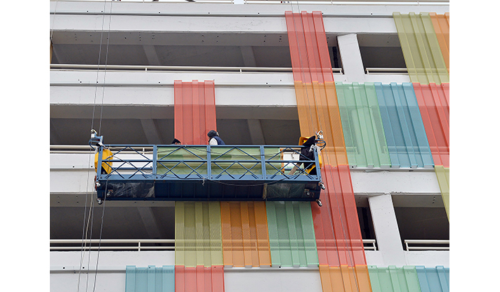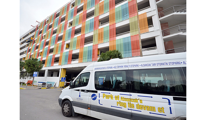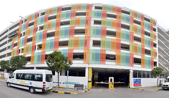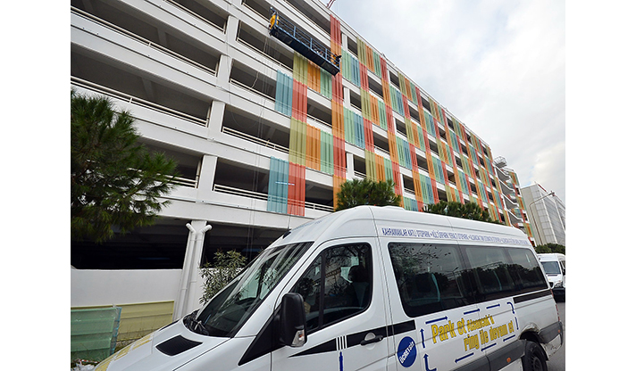 İzmir Büyükşehir Belediyesi, Kahramanlar Katlı Otoparkı’nı çağdaş görünüme kavuşmak amacıyla otoparkın çevre yoluna bakan kısmını rengarenk ferforje malzemeyle kaplayarak dekoratif bir hale getiriyor. Bin 200 araç kapasiteli, 589 üyeli Kahramanlar Otoparkı’da yapılacak renkli ferforje kaplamayla yapı görünümü daha estetik bir hale kavuşurken, hem cephe bütünlüğü hem de hava sirkülasyonu sağlanmış olacak. İzmir Büyükşehir Belediyesi, Kahramanlar Katlı Otoparkı’nın cephesini, led ekran aracılığıyla kentlileri bilgilendirme alanı olarak da kullanacak.