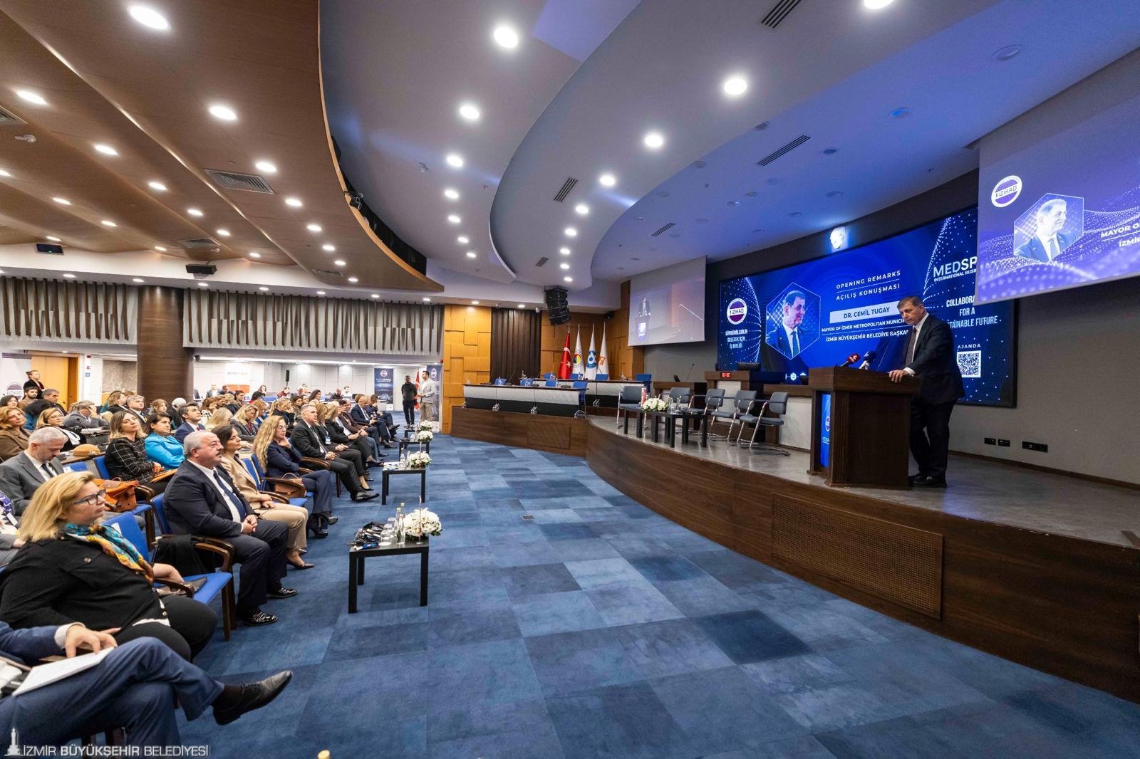 İzmir Büyükşehir Belediye Başkanı Dr. Cemil Tugay, İzmir İş Kadınları Derneği (İZİKAD) tarafından bu yıl ikincisi düzenlenen MEDSPARC Uluslararası İş Zirvesi’nin açılışına katıldı. Bu yıl “Sürdürülebilir Gelecek için İşbirliği: Üçüz Dönüşüm” temasıyla organize edilen zirve, İzmir Ticaret Odası Meclis Salonu’nda düzenlendi. Toplantıya Başkan Dr. Cemil Tugay’ın yanı sıra İzmir Valisi Dr. Süleyman Elban, Karabağlar Belediye Başkanı Helil İnay Kınay, İZİKAD Yönetim Kurulu Başkanı Özden Erten, Batı Anadolu Sanayici ve İş İnsanları Dernekleri Federasyonu (BASİFED) Yönetim Kurulu Başkanı Semiha Güneş, Akdeniz Ticaret ve Sanayi Odaları Birliği (ASCAME) Yönetim Kurulu Başkanı Ahmed M. El Wakil, kamu kurumlarının, meslek odalarının, sivil toplum kuruluşlarının ve İzmir iş dünyasının temsilcileri katıldı. Zirve kapsamında düzenlenen panellerde yeşil, dijital ve toplumsal dönüşümün kesişimi ele alındı. Uzmanlar yeşil teknolojiler ve çevresel açıdan sorumlu dijital çözümlerle iş birliği temelli inovasyonun sürdürülebilir ilerlemeyi nasıl hızlandırabileceğini tartıştı.