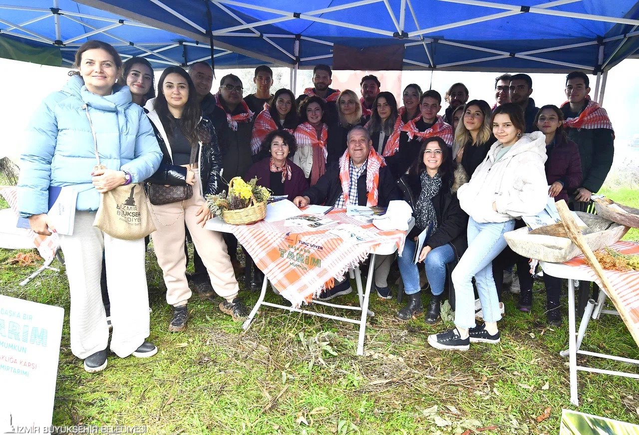 Gençleri ekim yaparken yalnız bırakmayan İzmir Köy Koop Birliği Başkanı Neptün Soyer, “İster üretici olun isterseniz tüketici olun tarladan sofraya giden hikâyeyi çok yakından bilmeniz gerekir. Tarlada gençlerin izinin olması gerek. Buradaki gençler gastronomi bölümünden mezun olacaklar ve un ile çok işleri olacak. Bizler geçen sene de bu etkinliği yaptık. Birlikte tarlaya karakılçık buğdayı tohumu ektik daha sonra onları hasat ettik ve Ödemiş Demircili Tarımsal Kalkınma Kooperatifi’nin un değirmeninde un oldu ve sokaktaki fırınlarda ekmek oldu. Bu bizim kimliğimiz. Bu bizim kadim bilgilerimiz. Bunu bizim aynı zamanda Başkanımız Tunç Soyer’in ‘Başka Bir Tarım Mümkün’ söylemiyle de bu kimliği gençlere, gençlerden de geleceğe aktarmak gerekiyor. Bu bir gelenek. Kırsalı, köyü korumazsak köylüyü güçlendirmezsek kentlerdeki yaşam daha da zorlaşacak. Bütün dünya konuşuyor” dedi.