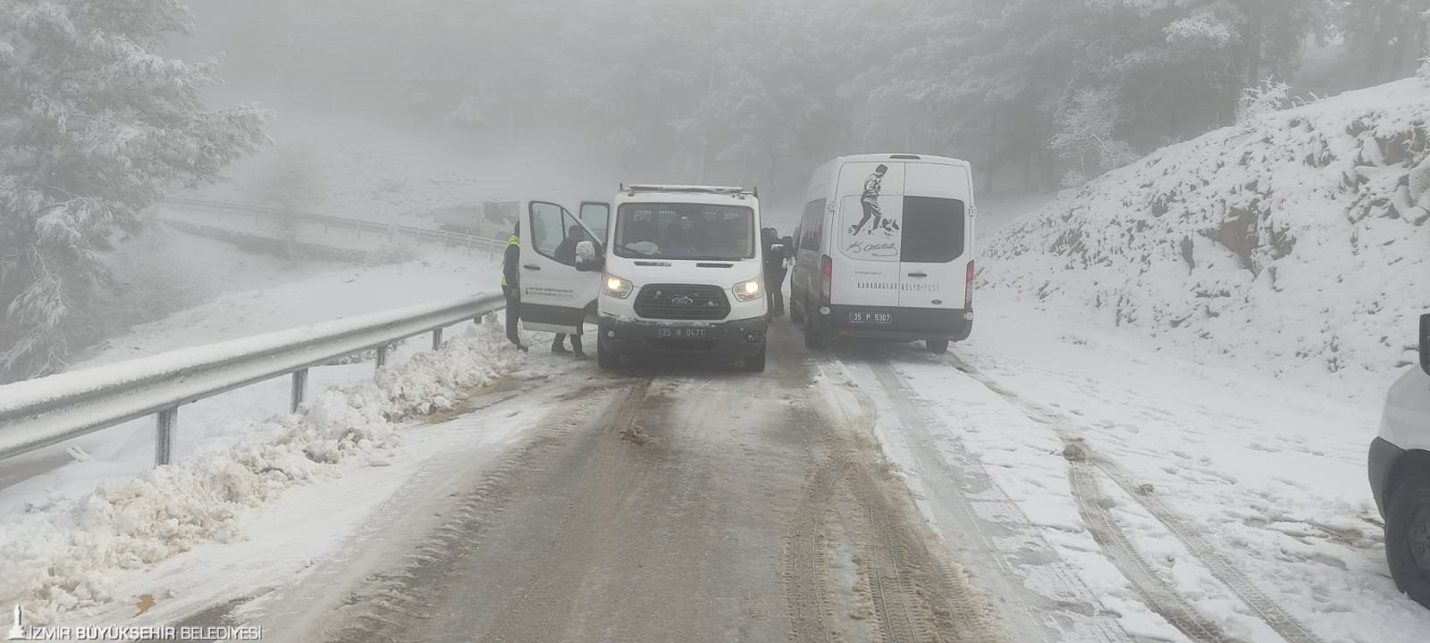 İzmir Büyükşehir Belediyesi, Kemalpaşa Spil Dağı ulaşım yolunda kar küreme ve tuzlama çalışması yaptı. Karabağlar Tırazlı Mahallesi Hava Radar Komutanlığı bölgesinde bir araç kurtarıldı. Müdahalenin ardından kar küreme ve tuzlama çalışmaları sürdürüldü. Kemalpaşa Ovacık Mahallesi’nde kar küreme ve tuzlama çalışması tamamlandı. Menemen Çukurköy Mahallesi’nde de bir araç kurtarıldı ve kar küreme çalışması yapıldı. Menemen’in Turgutlar ve Bozalan bölgelerinde araç kurtarma ve kar küreme çalışmaları sona erdi. Karşıyaka Karagöl, Tire Dallık Mahallesi, Ödemiş Çamyayla, Tire Kahve Dibekçiler, Ödemiş Horzum, Kiraz Ahmetler, Karabağlar Kavacık, Kınık Çanköy ve Karadere bölgesinde kar küreme çalışmaları sürdürülüyor. Tire Çeliközü’nde de müdahaleler devam ediyor.