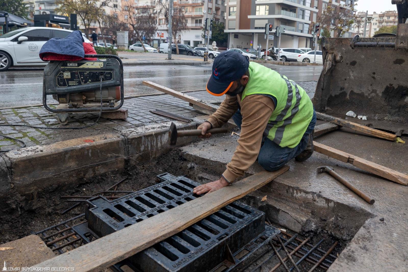 Yağmur suyu ızgaralarının bakım onarımı da yapılıyor