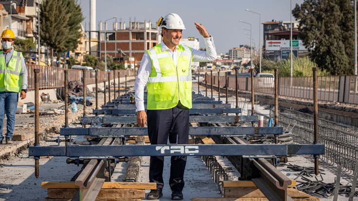 İzmir Büyükşehir Belediye Başkanı Tunç Soyer, “Raylı sistem konusunda üç yılda çok önemli adımlar attık. Yüzde 12 seviyesinde aldığımız Narlıdere Metro Hattı’nda imalat çalışmalarımızın yüzde 87’sini tamamladık. Çiğli Tramvayı inşaatına başladık ve kısa sürede yüzde 43 seviyesine geldik. Karabağlar-Gaziemir Metro Hattı’nda proje çalışmalarımız bu yıl tamamlanıyor. Yaklaşık 12 milyar liralık bütçesi ile İzmir tarihinin en büyük yatırımı olacak Buca Metrosu’nun temelini attık. Şimdi de Otogar-Kemalpaşa Metro Hattı ve Örnekköy-Yeni Girne tramvay hattı için kolları sıvadık. 93 kilometreyi bulan 6 raylı sistem ağı yatırımlarımızı tamamladığımızda kentimizdeki raylı sistem ağımız 270 kilometreye çıkacak. İzmir’i demir ağlarla öreceğimizi söylemiştik. İzmir halkına verdiğimiz bu sözü adım adım yerine getirmenin onurunu yaşıyoruz.”