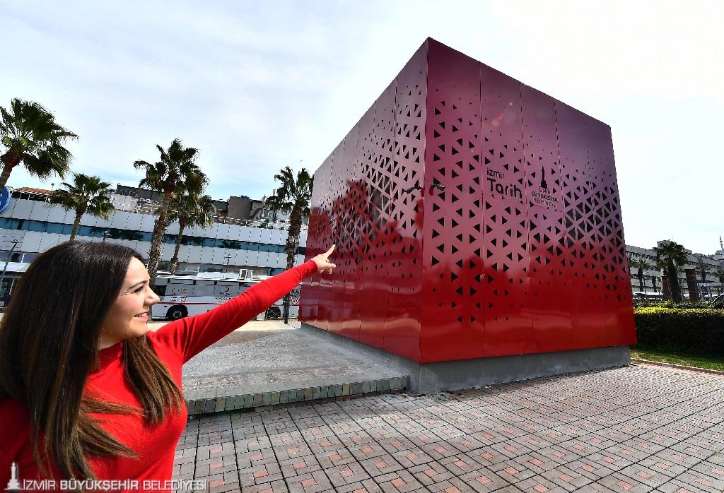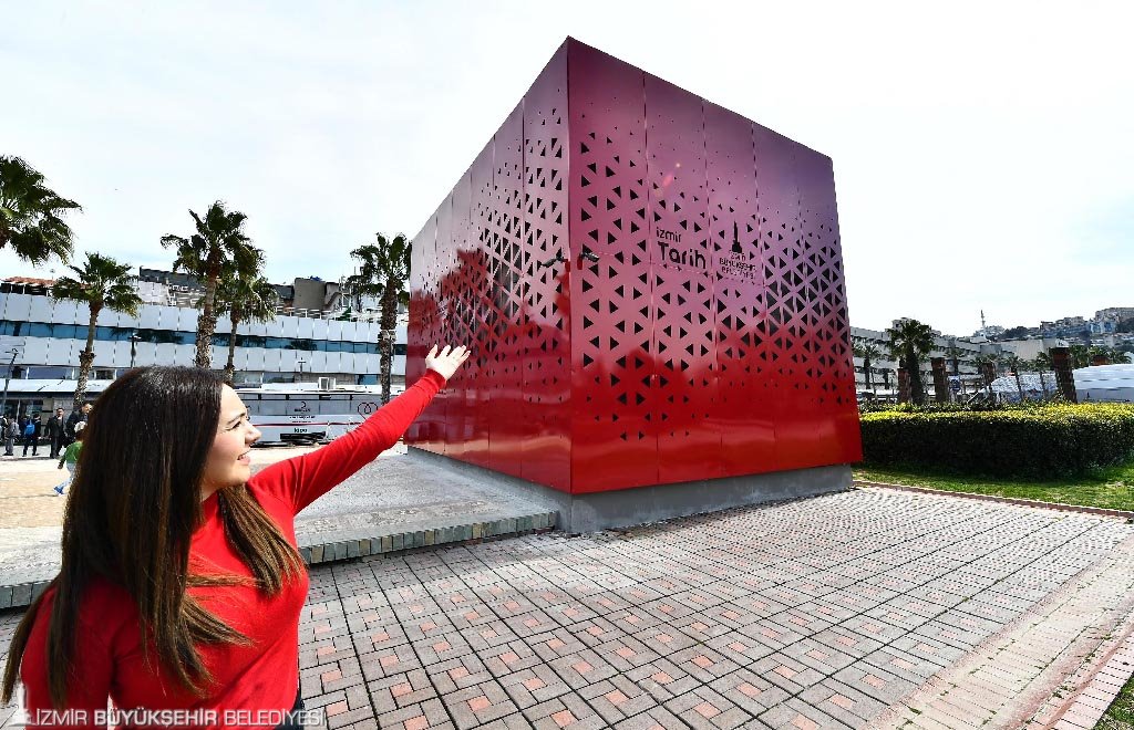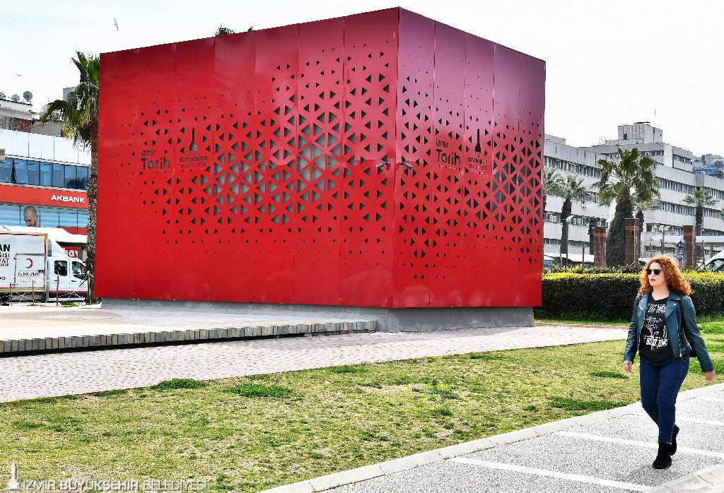 Geçici süre için konuşlandırılan bu kırmızı prefabrik yapıda, görsel haritalama, video ve animasyonlar eşliğinde, İzmir Büyükşehir Belediyesi'nin tarihi bölgede yürüttüğü çalışmaların ve 252 hektarlık alanı kaplayan Konak, Kemeraltı ve Çevresi Yenileme Alanı'nın tanıtımı gerçekleştirilecek.
