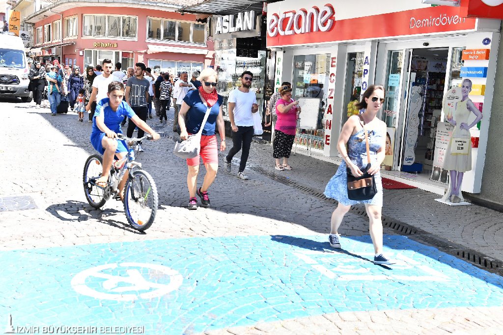 Tarihi hanları, şadırvanları ve havraları ile İzmir’in en önemli cazibe merkezleri arasında yer alan Kemeraltı Çarşısı’nda geçtiğimiz yıl Büyükşehir Belediyesi tarafından başlatılan yaya öncelikli ulaşım uygulamasıyla çarşıya giren motorlu taşıtlar için saat kısıtlaması getirilmişti. “Yayalaştırma Projesi” kapsamında tarihi çarşı 10.30 ile 17.30 saatleri arasında motorlu araç girişine kapatılmıştı. Yayaların daha güvenli bir ortamda gezerek alışveriş yapmasını sağlamak ve bölgedeki hava kirliliğini azaltmak için hayata geçirilen uygulama vatandaşı ve esnafı memnun etti. İzmir Büyükşehir Belediyesi yaz döneminin gelmesi ile birlikte Kemeraltı’nı canlandıracak, vatandaşı ve esnafı memnun edecek yeni bir karar daha aldı. İzmir Büyükşehir Belediyesi Ulaşım Koordinasyon Merkezi (UKOME) kararı doğrultusunda, 1 Temmuz 2019 tarihinden itibaren vatandaşların yaz boyunca daha rahat alışveriş yapabilmesini sağlamak için çarşının motorlu araç girişine kapalı olduğu zaman dilimi akşamları iki saat daha uzatılarak, 19.30’a çekildi.