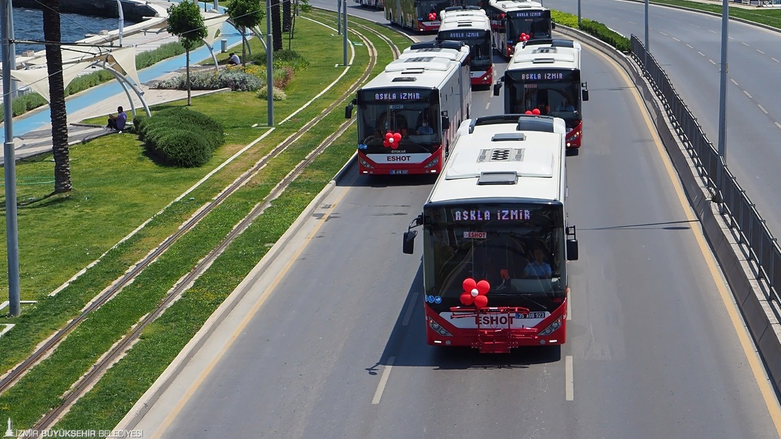 İzmir Büyükşehir Belediyesi otobüs filosunun 3'te birini yeniledi. Ülke genelinde tek seferde en büyük alıma imza atan İzmir Büyükşehir Belediyesi 570 bin liralık yatırımla 160'ı körüklü, 204'ü solo 364 otobüs satın aldı. Kamu kaynakları verimli kullanılarak, çevreye duyarlı motor altyapısına sahip, engelli kullanımına elverişli, bisiklet taşıma aparatı ve USB portları bulunan otobüslerle kent içi ulaşım daha konforlu ve güvenli hale geliyor. Devlet Malzeme Ofisi'nden alınması durumunda peşin olarak 762 milyon liraya alınacak bu otobüslerin ücreti, borç ve vade farkı olmaksızın 5 yıl eşit taksitlerle ödenecek. Yüzde 18’lik KDV istisnası da dahil edildiğinde, İzmir Büyükşehir Belediyesi’nin, otobüsleri alırkenki kazancı yaklaşık 242 milyon TL oldu. Ayrıca sözleşme kapsamında beş yıl boyunca yedek parça ve bakım-onarım hizmeti de ücretsiz alınacak. İzmir Büyükşehir Belediyesi son iki yılda toplam 674 milyon liralık yatırım yaparak 4'ü engelli yurttaşların kullanacağı şekilde tasarlanan 451 otobüsü filosuna dahil etti.