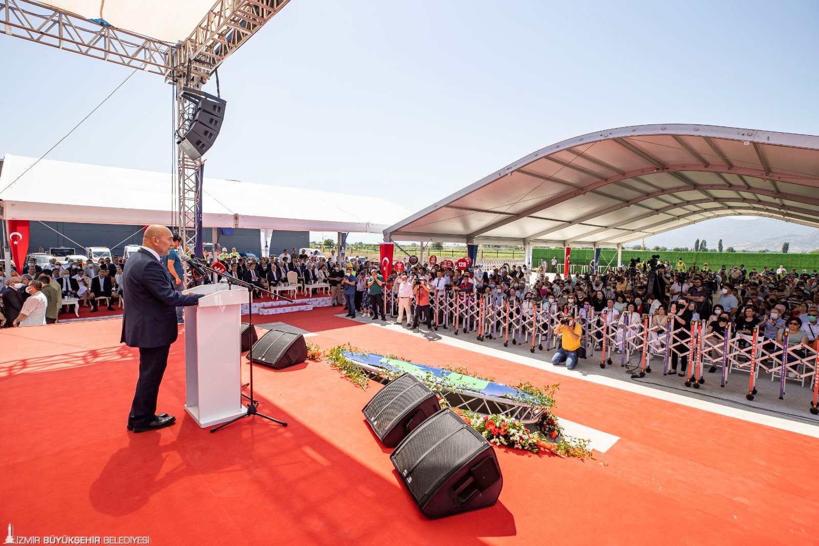 Ödemiş Belediye Başkanı Mehmet Eriş ise “Bu güzel topraklarda bize övünmek yetmiyor. Övünmeyi hak etmek için kadınlarımıza, çiftçimize sahip çıkmamız gerekiyor. Bunu da Tunç Başkanımızın önderliğinde başlattık; sürdürüyoruz. Son nehir kurumadan, Küçük Menderes yeraltı su kaynaklarımız Konya’daki gibi obruğa dönüşmeden, denizlerimiz müsilaj ile kaplanmadan yapmamız gereken ödevlerimiz var. Tunç Başkanımızla birlikte bu topraklarımızı korumanın, sonsuza kadar sahip çıkmanın adımını attığımız için çok mutluyuz” dedi. İzmir Büyükşehir Belediye Başkanı Tunç Soyer’in seçim döneminde Ödemiş’e gelerek 29 maddelik bir çalışma programı açıkladığını hatırlatan Eriş, “Başkanımız dersine çok çalışmıştı. Ben öğretmen olduğumu sanıyordum ama öğrenci oldum. Onun eşsiz destekleriyle ata tohumuna geri dönüyoruz. Kimyasal gübreye ‘dur’ diyoruz. Tunç Başkanımızla Küçük Menderes’teki çiftçiyi milletin efendisi yapmaya ant içtik. İzmir Büyükşehir Belediyemizle ele ele verip verimli topraklarımızda suyumuzu korumak, yoksullukla ve kuraklıkla mücadele etmek için projelerimiz hayata geçiriyoruz. Kendi sınıfında Avrupa ölçeğinde bir numara olan bu tesisin hayırlı olmasını diliyorum”.