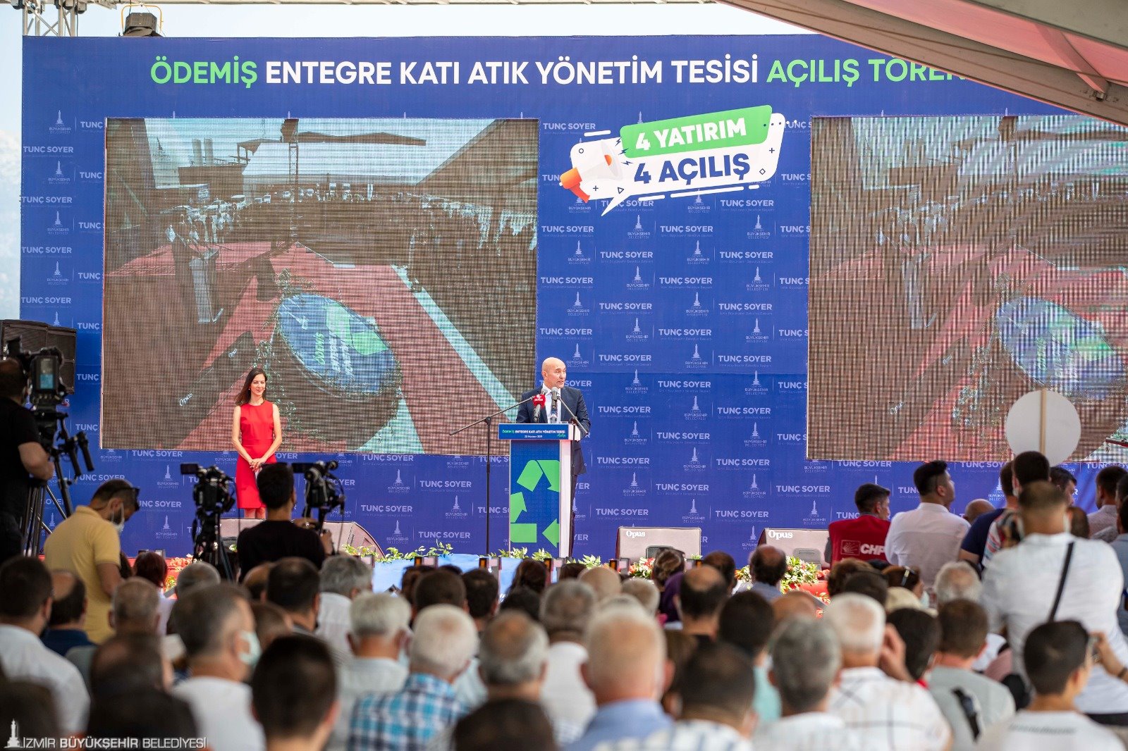 İzmir Büyükşehir Belediyesi tarafından kente kazandırılan 3 tesisin açılışı ve toplu ulaşım filosuna dahil edilen 364 otobüsün hizmete alınması nedeniyle düzenlenen törenlere katılmak üzere kente gelen Cumhuriyet Halk Partisi Genel Başkanı Kemal Kılıçdaroğlu’nun ilk durağı Ödemiş ilçesi oldu. İzmir Büyükşehir Belediye Başkanı Tunç Soyer'in çöpün kaynak olarak ekonomiye kazandırılması politikası doğrultusunda katı atıkları elektrik ve gübreye dönüştürmek üzere kurulan Ödemiş Entegre Katı Atık Yönetim Tesisi, Genel Başkan Kılıçdaroğlu’nun katıldığı törenle açıldı.