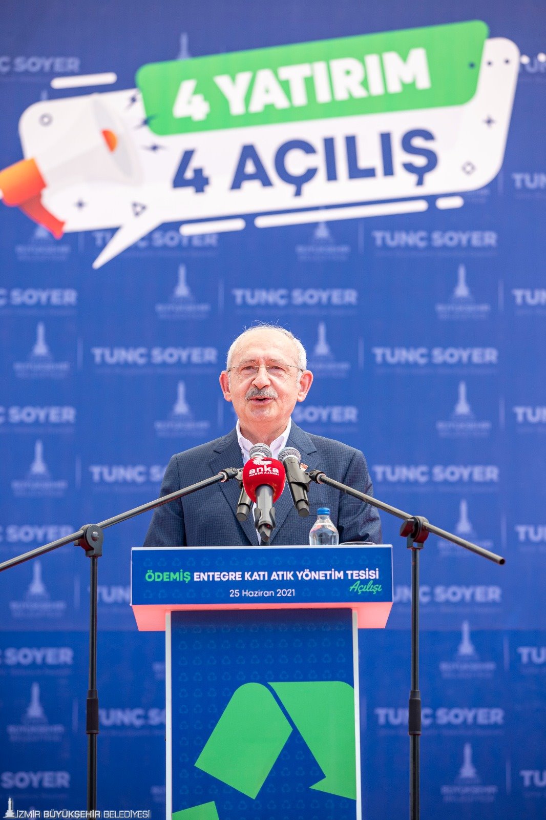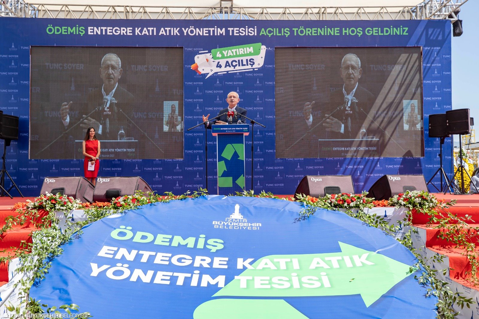 Küçük Menderes Havzası'nda yer alan Ödemiş, Tire, Kiraz, Beydağ, Bayındır ilçelerine hizmet verecek, 350 milyon liralık yatırımın açılış töreninde konuşan Kılıçdaroğlu, bu tesiste herkesin kapısının önüne koyduğu çöplerin sanayide hammaddeye, tarımda gübreye ve elektriğe dönüşeceğini belirterek, “Büyükşehir Belediye Başkanımız ve Ödemiş Belediye Başkanımız el ele verdiler, böyle bir tesisi İzmir’e kazandırdılar. Aslında bu tesis bütün Türkiye’ye hizmet ediyor. Bu tesisin değerini hepimizin bilmesi gerekiyor” dedi.