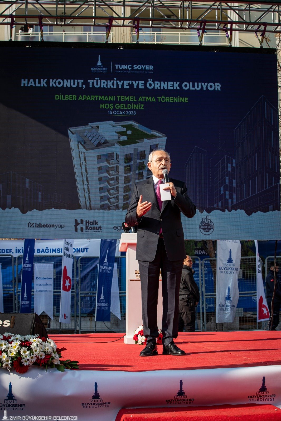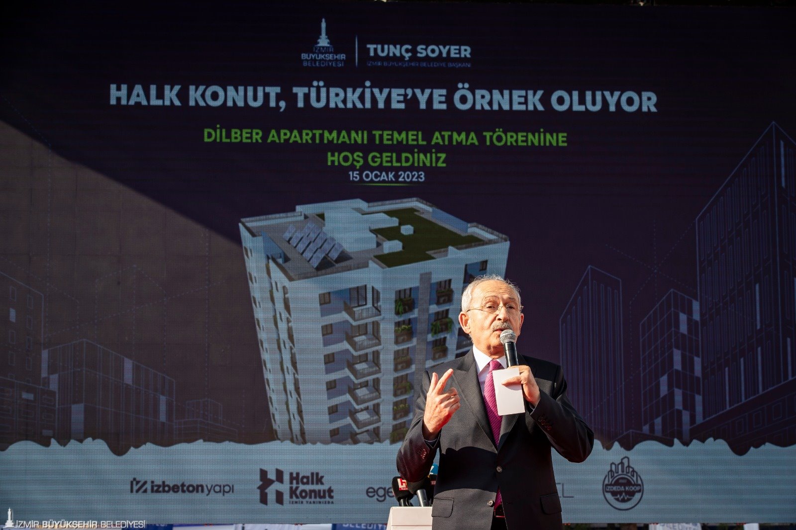 30 Ekim depreminden etkilenmesine rağmen evleri ağır hasarlı olmadığı için devlet desteği alamayan İzmirli depremzedelere destek olmak amacıyla İzmir Büyükşehir Belediyesi tarafından geliştirilen Halk Konut Projesi kapsamında Dilber Apartmanı'nın temeli, CHP Genel Başkanı Kemal Kılıçdaroğlu tarafından atıldı. Törene CHP Genel Sekreteri Selin Sayek Böke, eski Çalışma ve Sosyal Güvenlik Bakanı Yaşar Okuyan, CHP İzmir İl Başkanı Şenol Aslanoğlu, İzmir Köy-Koop Birlik Başkanı Neptün Soyer, İzmir Büyükşehir Belediyesi Başkan Vekili Mustafa Özuslu, CHP Genel Başkan Yardımcıları, milletvekilleri, belediye başkanları ve çok sayıda yurttaş katıldı.