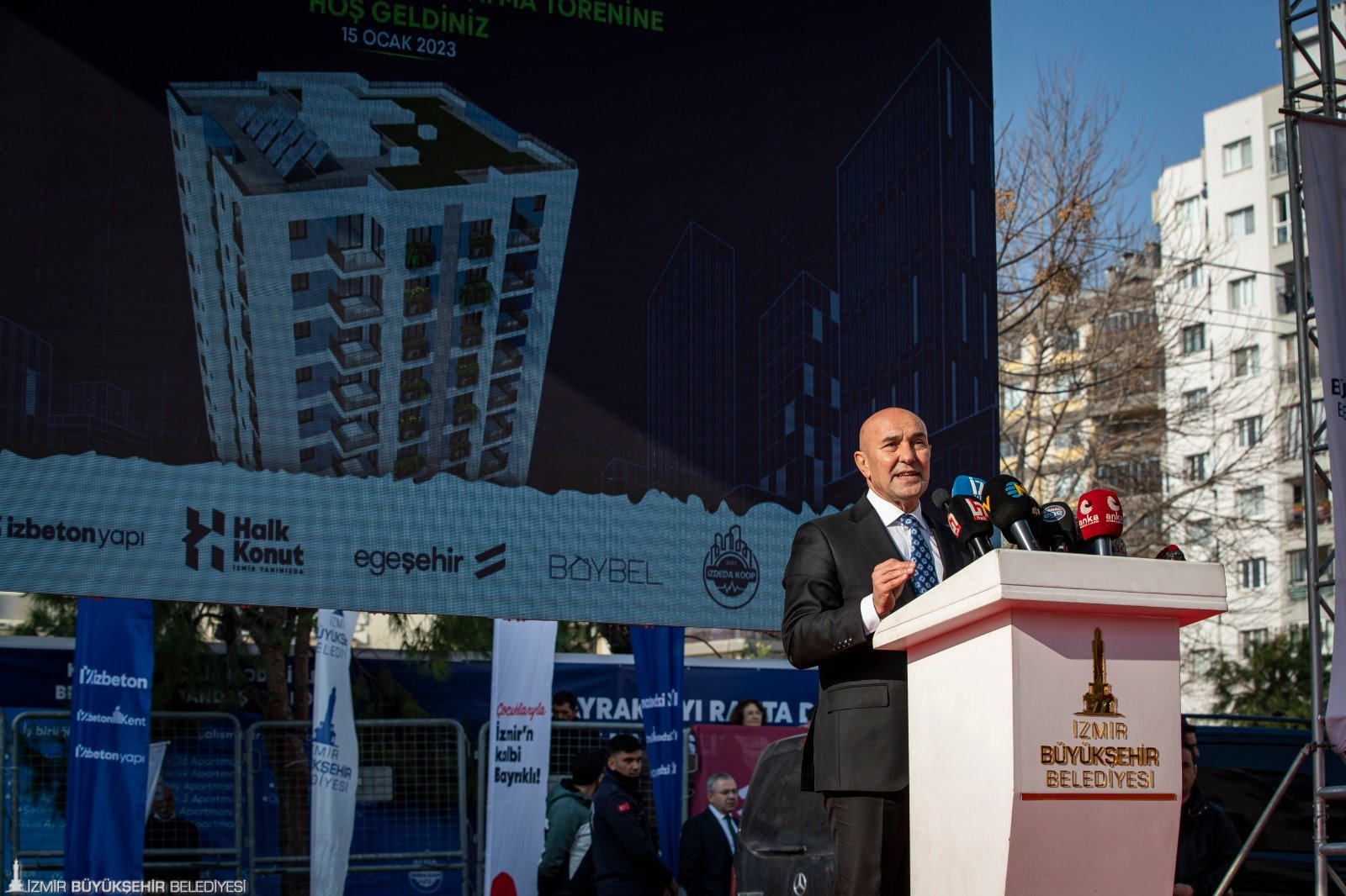 CHP Genel Başkanı Kemal Kılıçdaroğlu, törende yaptığı konuşmada İzmir Büyükşehir Belediyesi'nin öncülüğünde bir kooperatifleşme mantığı ile depremzedelerin en uygun koşullarda, ev sahibi olmalarına imkan sağlandığını söyledi. Kılıçdaroğlu, “Daha önce de buraya geldim, kat artışı istediler. Başkanımıza bunu yapmasını söyledim. Çünkü depremzedenin ödeyeceği para yok. Evi elinden gitmiş. Bu yapıldı. Ucuz kredi bulundu. Şimdi yüzde 1 kar ile depremzedeler konut sahibi olacaklar. Başkan hiç endişe etme. Bu projeyi Türkiye’nin tüm illerinde uygulayacağız. Evleri hasar gören herkesin uygun koşullarda ev sahibi olmasını sağlayacağız. Vatandaş ile kamunun birlikte, el ele olması lazım. Birlikte mücadele etmesi lazım. Kazanımları birlikte kazanmamız lazım. Ve bu kazanımların getirdiklerini hayata geçirmemiz lazım. İzmir bu konuda öncülük yaptı. Belediye başkanlarımıza şükran borçluyum ve onlara teşekkür ediyorum” dedi.