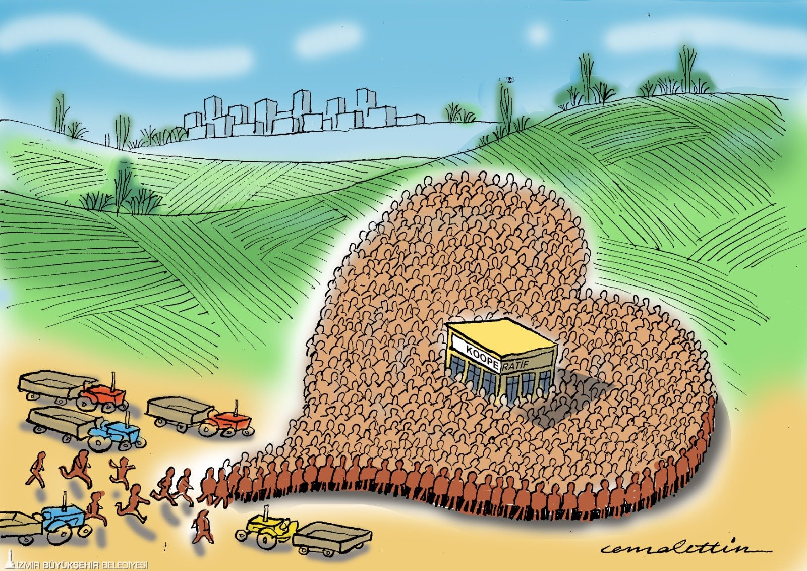 İzmir Büyükşehir Belediyesi’nin “Köylünün Örgütlü Gücü Kooperatif” temasıyla bu yıl ikincisini düzenlediği ulusal karikatür yarışmasında dereceye giren eserler belirlendi. Birinciliği Bursa’dan Halit Kurtulmuş Aytoslu, ikinciliği Denizli’den Mehmet Selçuk, üçüncülüğü İstanbul’dan Ahmet Öztürklevent’in kazandığı yarışmada İzmir’den Melek Demirel, Kocaeli’nden Mustafa Enes Çakıcı ve Sinop’tan Zeliha Nur Maviş ise Genç Teşvik Ödülü’ne layık görüldü. Seçici kurul Kocaeli’nden Ahmet Özalp, İzmir’den Cemalettin Güzeloğlu ile İstanbul’dan Nuhsal Işın’ı ise mansiyon ödülüne layık gördü.