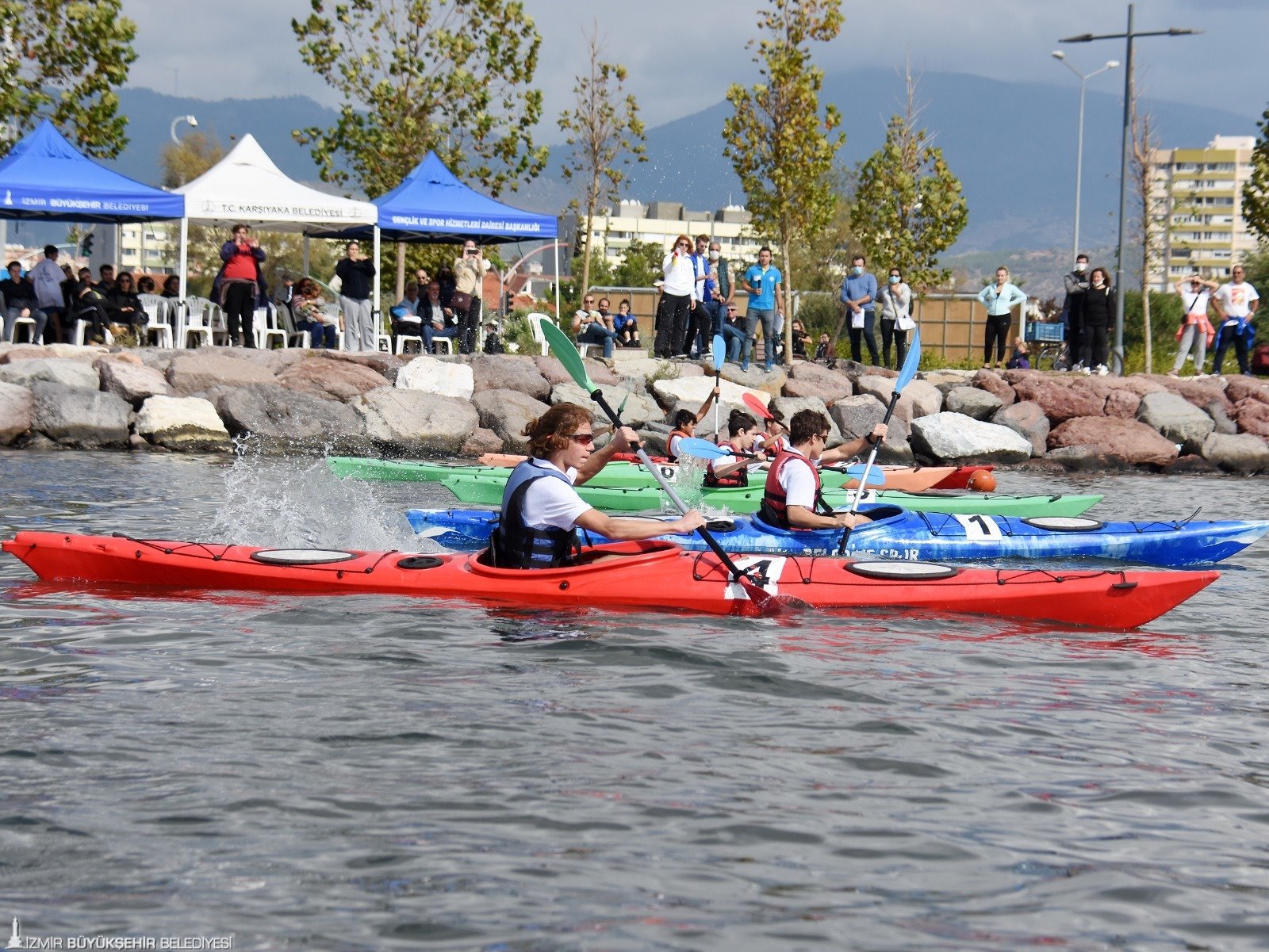 4. İzmir Körfez Festivali kapsamında düzenlenen Kano Eğitimi ve Kano Yarışları renkli görüntülere sahne oldu. İzmir Büyükşehir Belediyesi ve Karşıyaka Belediyesi'nin ortaklaşa gerçekleştirdiği organizasyon Tahir Secder Akıncı Su Sporları Merkezi önünde başladı. İzmir Büyükşehir Belediyesi Gençlik ve Spor Şube Müdürü Bahadır Eroğlu ve Karşıyaka Belediyesi Spor İşleri Müdürü Berkhan Alptekin yaklaşık 35 sporcunun kayıt yaptırdığı yarışmaların startını verdi. Beş kategoride düzenlenen yarışlarda ilk üçe giren sporculara madalya ve günün anısına tişört hediye edildi. İzmir'de iki gün boyunca renkli görüntülerin sahnelendiğini belirten İzmir Büyükşehir Belediyesi Gençlik ve Spor Şube Müdürü Bahadır Eroğlu, “Bugün havanın güzel olması bizleri de mutlu etti. Bu yıl dördüncüsü düzenlenen Körfez Festivali'ndeki kano yarışı İzmir’in sporu sahiplendiğinin göstergesi oldu. İzmir Büyükşehir Belediyesi Başkanımız Tunç Soyer'in ‘Spor Kenti İzmir’ vizyonu sayesinde halkımızı sporla buluşturmaya devam ediyoruz. İki gün boyunca körfezde güzel görüntüler oldu” dedi.