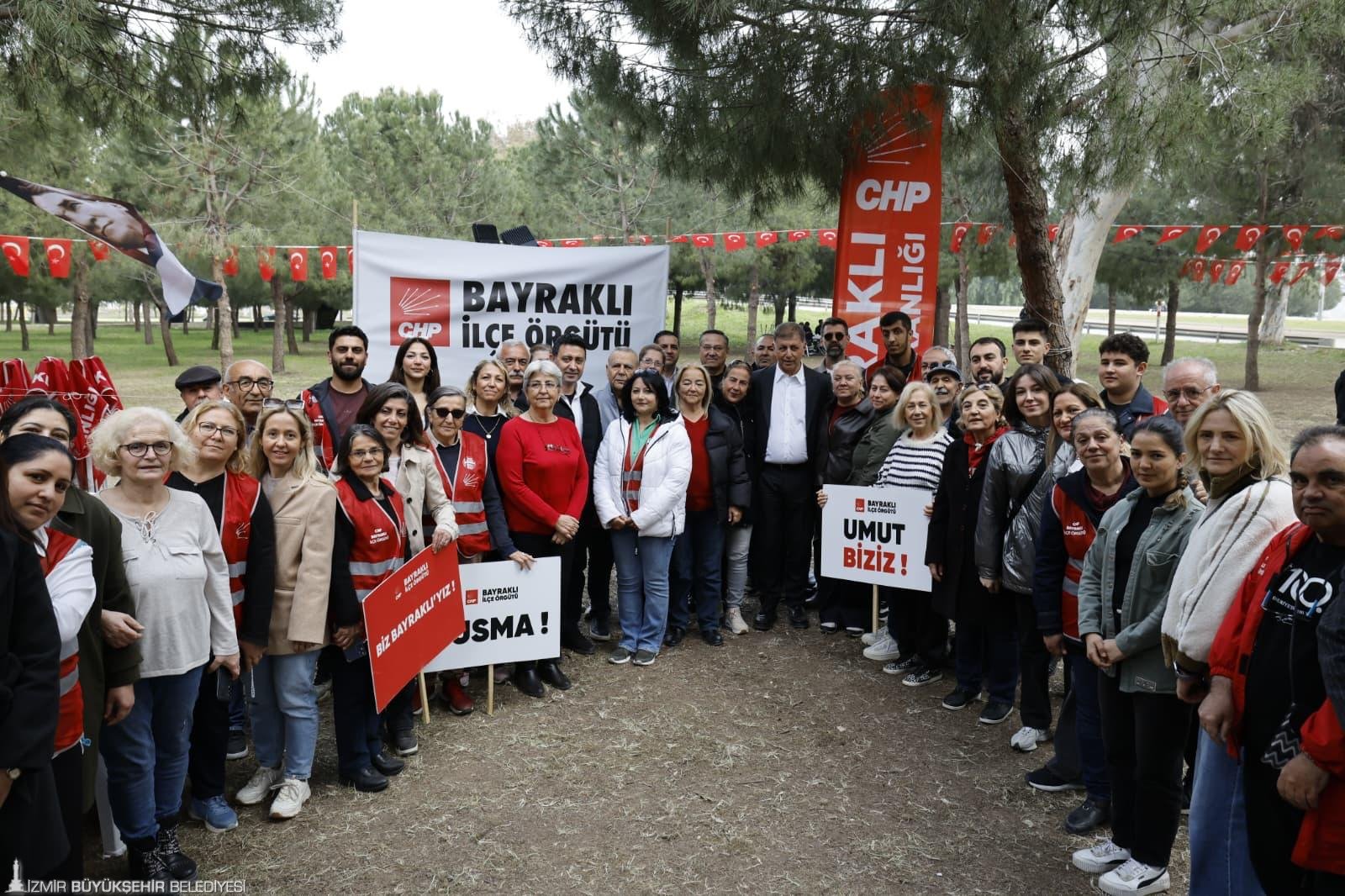 Tüm İzmirlilere seslenen Başkan Tugay, “Bir avuç insan burada toplanıyor bir şeyler konuşuyorlar diyorlar. Sokakta duyuyorum, iki kişiden birisi gelip biz olaydan haberdarız, doğru bulmuyoruz, haklı tepkinizde yanınızdayız, gelemiyoruz, gidemiyoruz ama yanınızdayız diyorlar. Buraya gelemeyenlere söylüyorum, bulunduğunuz her yerden, her şekilde hem bu hukuksuzluğa, bu yalana dolana hem de maruz kaldığınız her türlü haksızlığa karşı sesinizi çıkarın, itiraz edin, bir şeyler söyleyin. Adaletsizlik ve kötülük normalleşmemeli. Kimse bunu normal olarak görmemeli. Bu anormal bir durum ve bunun devamında yeni anormallikler herkesi bekliyor. Bu sistem bir avuç insanın işine yarıyor ama halkın tamamı perişan oluyor. Ondan dolayı çocuklarımız bu ülkeden umudunu kestiler. Bizim insanlarımız neden bu kadar sessiz diyorlar ve bu ülkeden gidiyorlar. O yüzden kötülüğü kabullenmeyin. Kötülüğü bu ülkede kimse kabullenmesin” şeklinde konuştu.