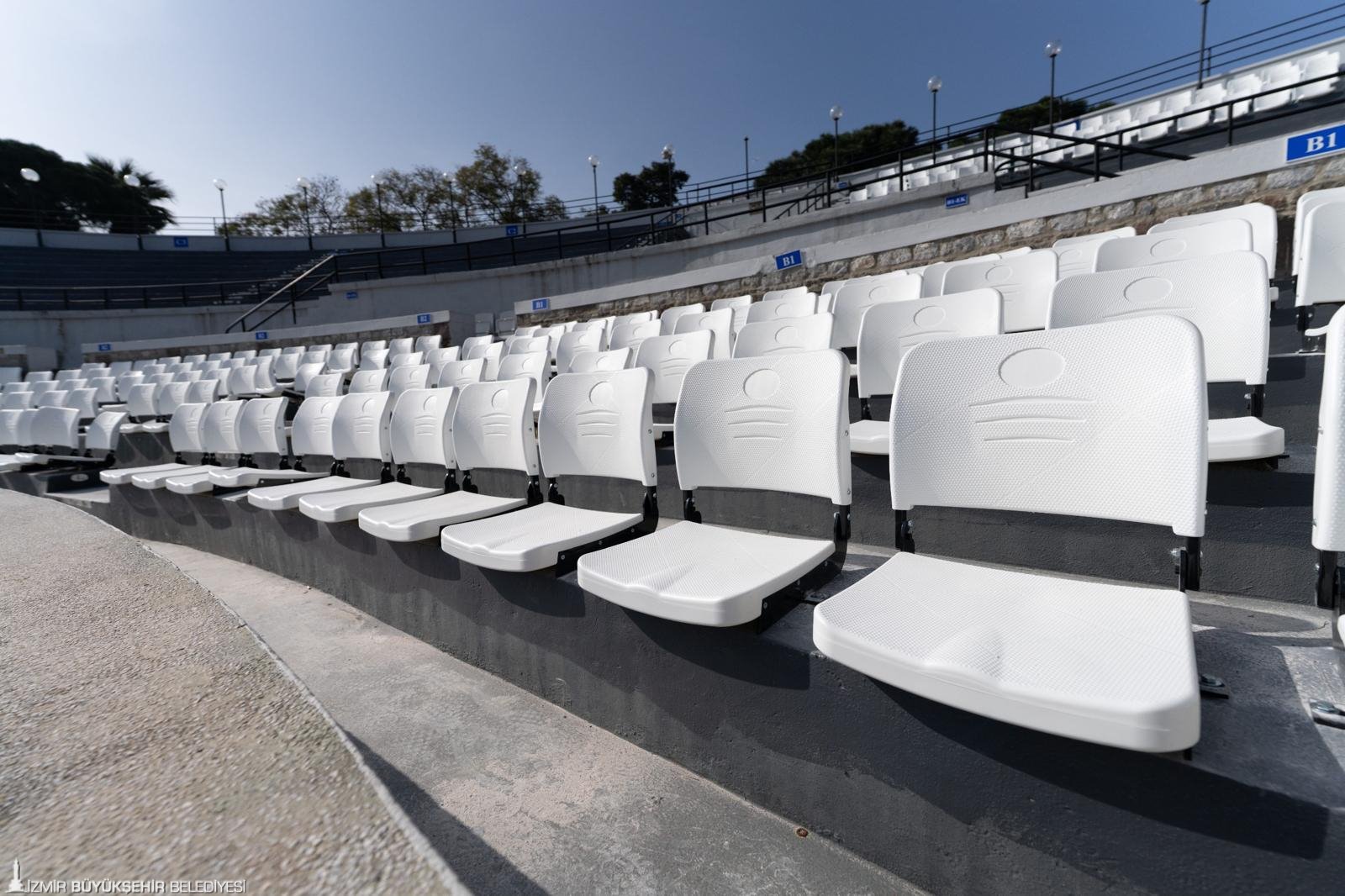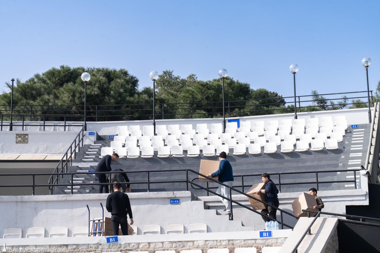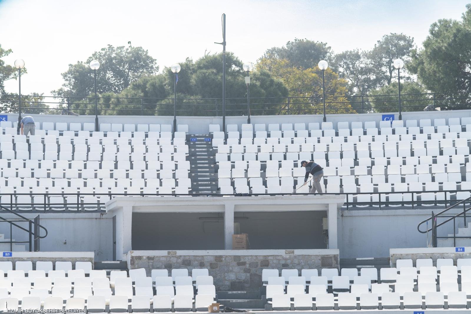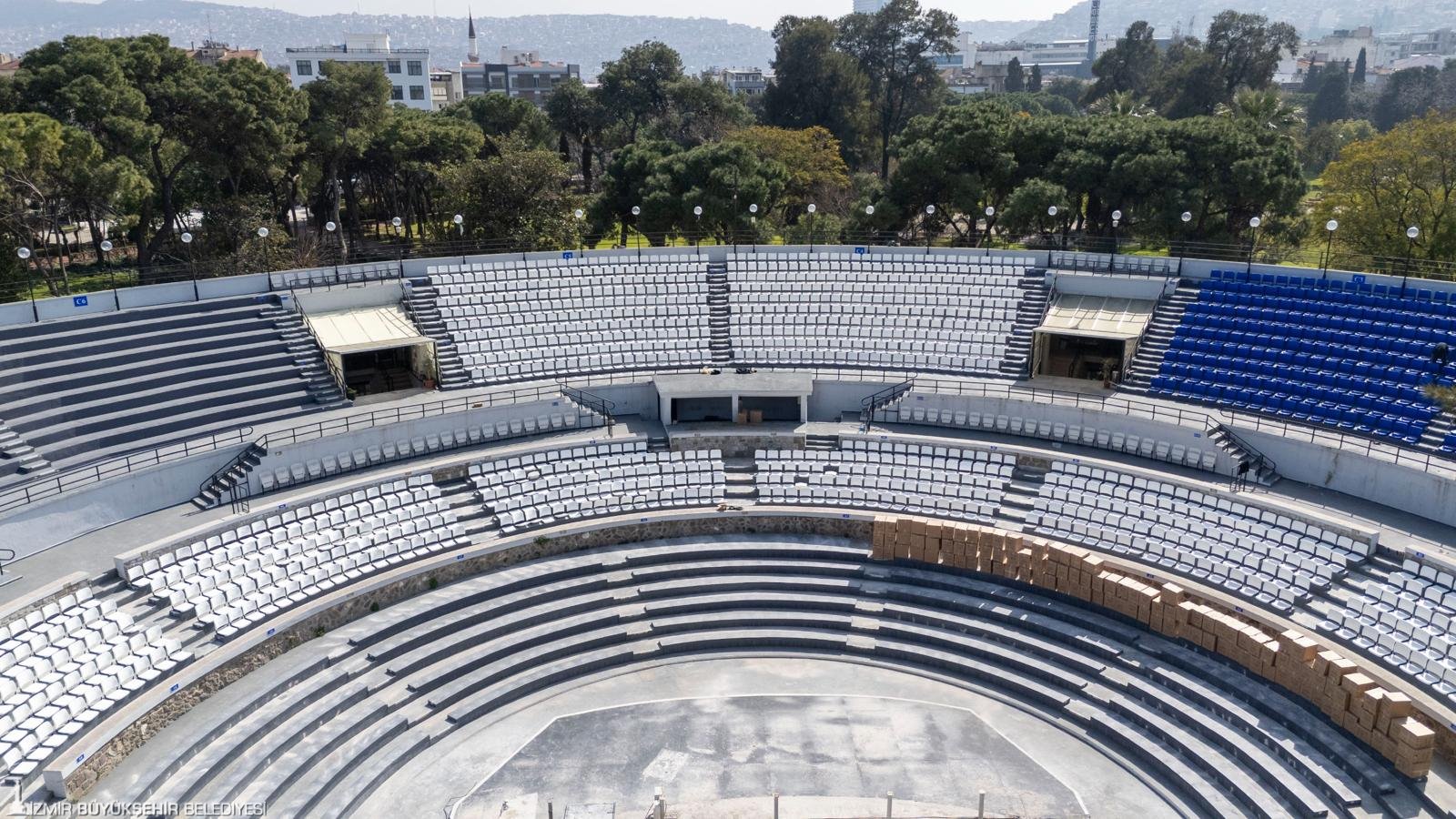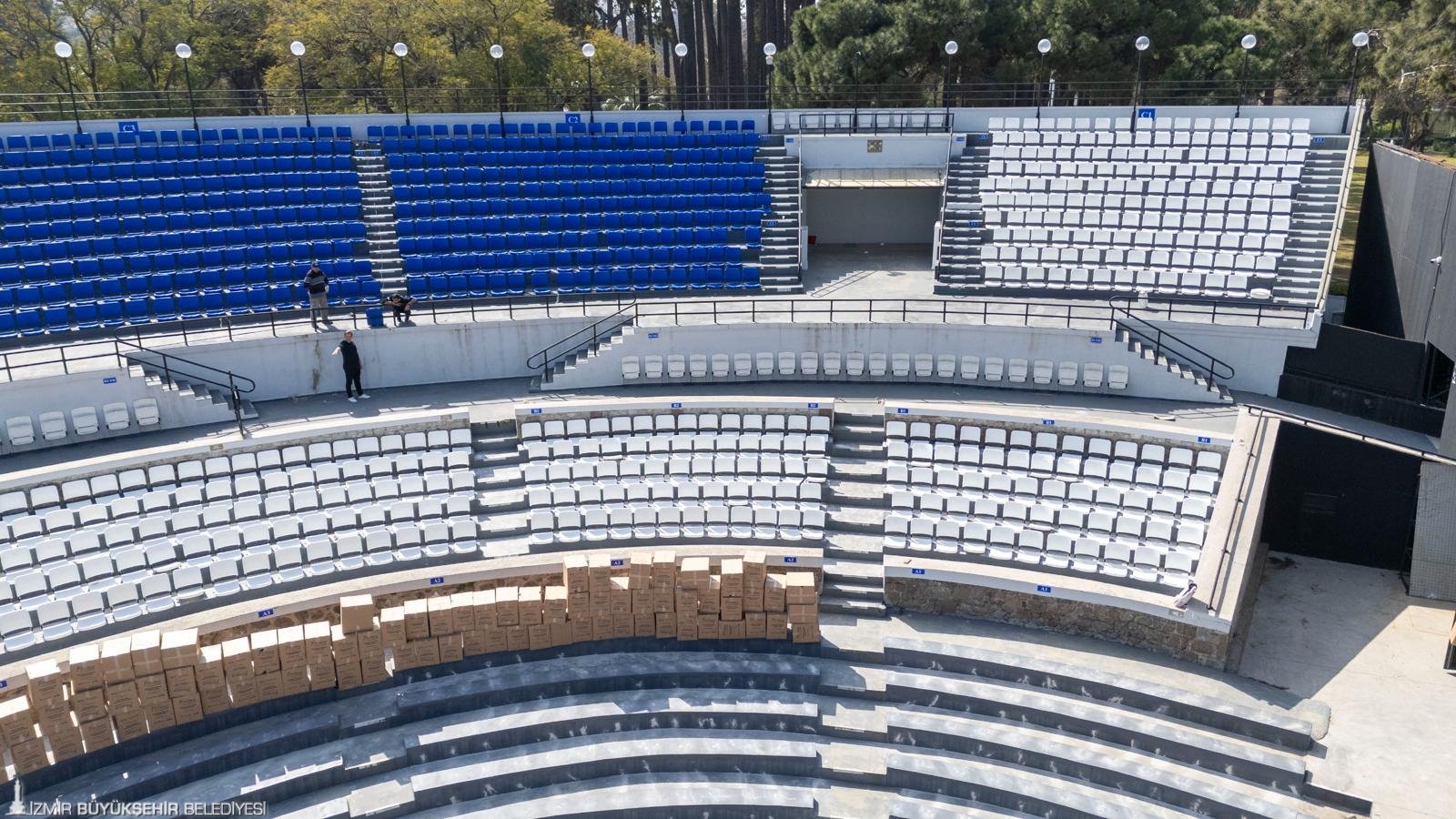 Yürütülen çalışmalar hakkında bilgi veren Grand Plaza AŞ yetkilisi Barış Amiral, “İzmir Büyükşehir Belediye Başkanımız Dr. Cemil Tugay’ın talimatıyla, tiyatro ve konser etkinliklerinde vatandaşlarımızın çok daha kaliteli ve konforlu vakit geçirebilmesi için büyük bir revizyona gittik. Bu yıl kapsamlı bir tadilat sürecine girdik. Sahne yapısını ve tribünlerdeki koltukları yeniden düzenliyoruz. Eski sahnemiz yaklaşık 4,5 metre daha uzundu ve bu nedenle blokların ilk ve son sıralarındaki izleyicilerin görüş mesafesi sınırlıydı. Şimdi sahneyi geriye alarak bu sorunu çözdük. Yeni sezonda, daha rahat ve dayanıklı koltuklarla hizmet vereceğiz. Çalışmalarımızı nisan ayının ikinci veya üçüncü haftasında tamamlamayı hedefliyoruz. Harika bir sezona hazırlanıyoruz” dedi.