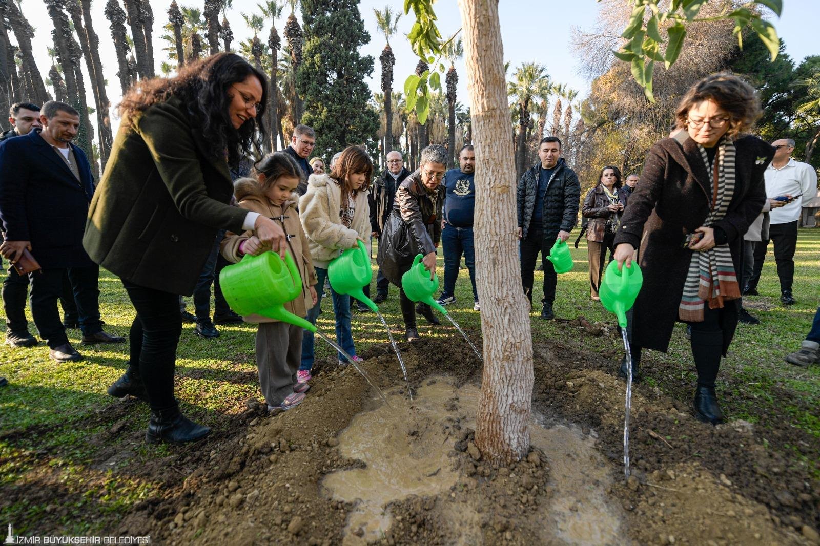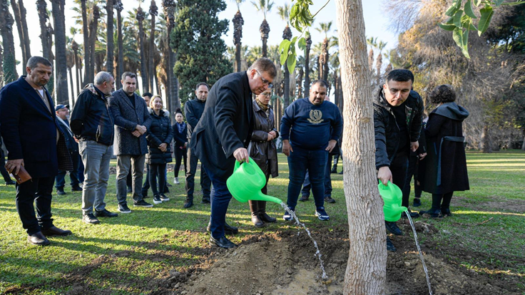 Başkan Tugay, 1936 yılında tam 89 yıl önce bugün 1 Ocak’ta Kültürpark’ın kuruluşu için ilk adımların atıldığını belirterek “Biz onun yıl dönümündeyiz. O günlerde hepimizin saygıyla hatırladığı, hekim olduğu için, meslektaşım olduğu için de özel bir gurur duyduğum Dr. Behçet Uz’un belediye başkanlığı döneminde bu gördüğünüz alan yanmış kuru bir alandı. O dönemde Atatürk’ün İzmir’in fuarlar şehri olması talimatını da dikkate alarak burada bir fuar alanı, Kültürpark alanı oluşturmak için çalışma başlattıkları ilk gün. Biz de Kültürpark’ın yeşil dokusunu koruma ve olabildiğince geliştirme kararı verdikten sonra biraz da ilk kurulduğu yıllardaki gibi farklı türden ağaçların yaşadığı bir alan olmasını istedik. Bir tür arboretum alanı haline getirmeyi amaçlayarak farklı ağaç türlerinin dikimini gerçekleştiriyoruz. Sayıca az ama İzmir’de hemen hemen hiç olmayan ağaç türlerini diktiğimiz bir gün bugün” şeklinde konuştu.