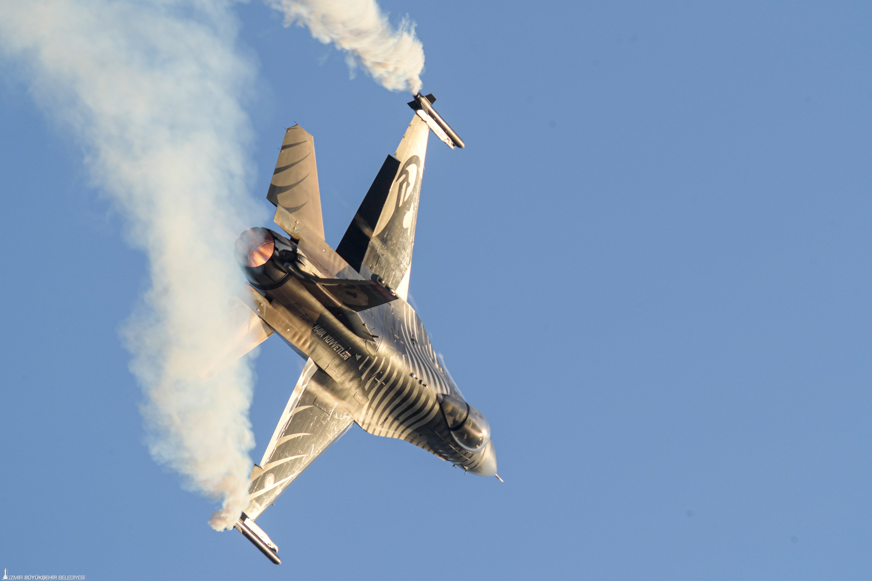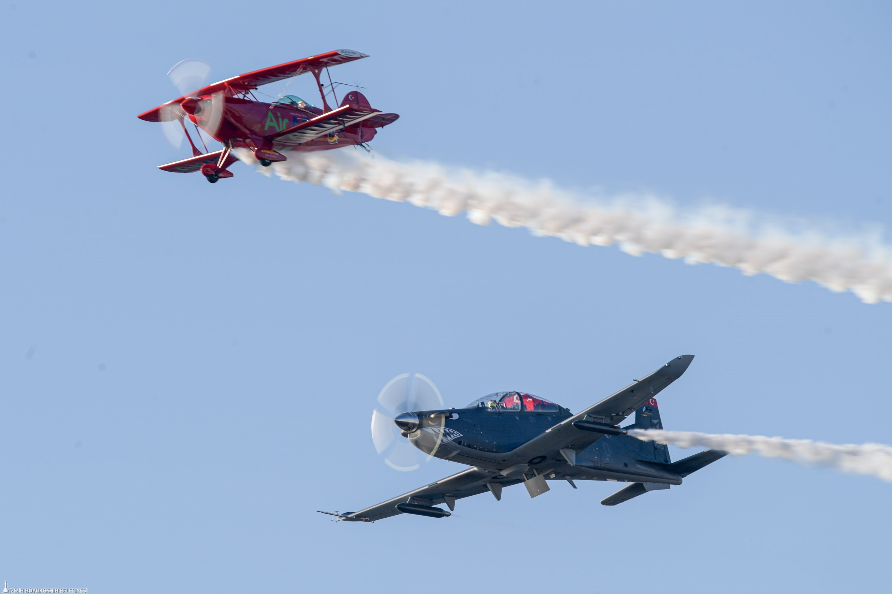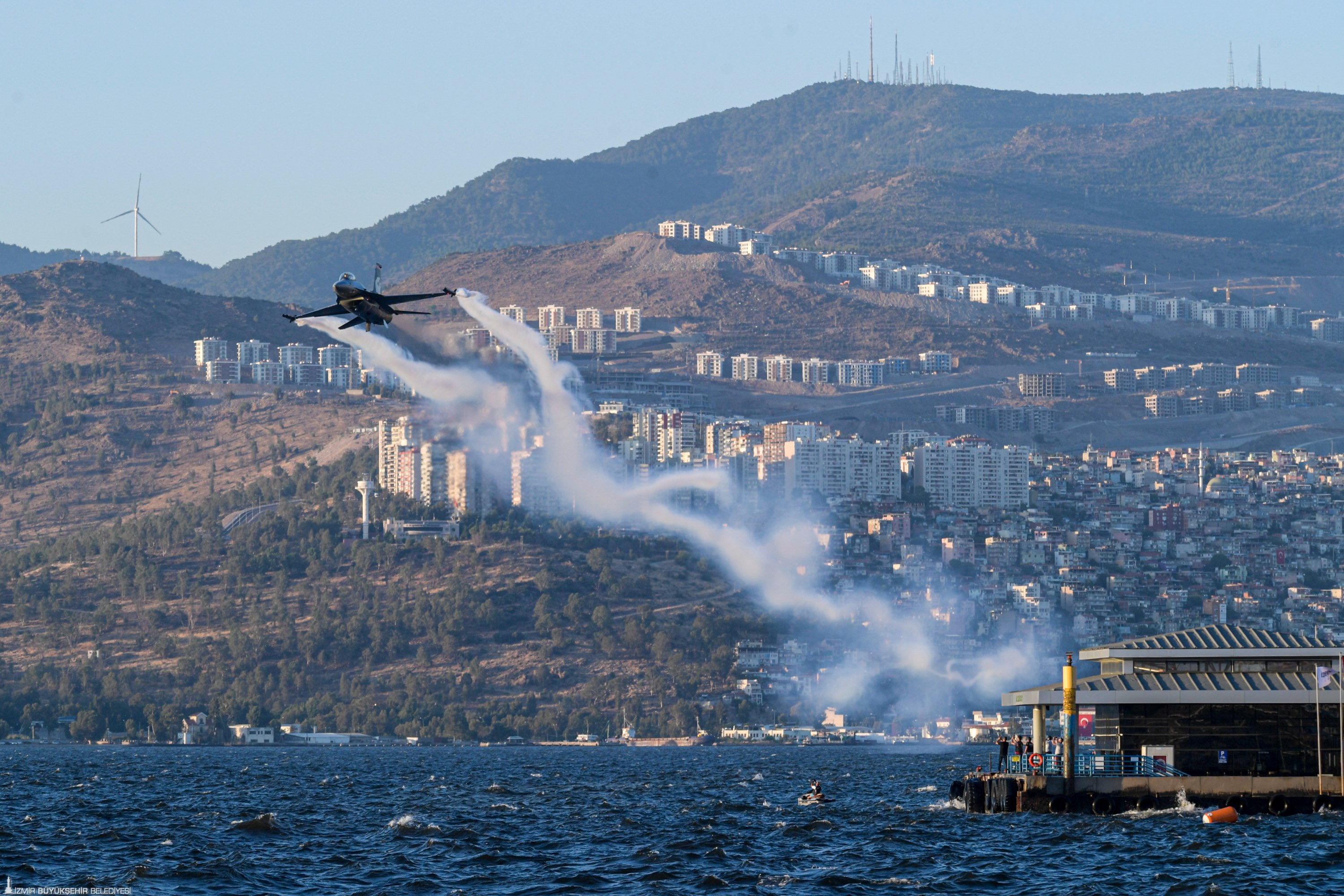 İzmir’in kurtuluşunun 100. yıl dönümü etkinlikleri havada ve karada tüm coşkusuyla sürüyor. Binlerce İzmirli, Türk Yıldızları ve Solo Türk’ün yaklaşık bir saatlik hava gösterisini hayranlıkla seyretti. İzmir semaları aynı zamanda Genel Havacılık Uçakları ve İzmir Kulüpleri’nin selamlama uçuşu, Hürkuş Gösteri Uçuşu, Jandarma Çelik Kanatlar gösterisi, Polis Havacılık Üzüm Salkımı, Sahil Güvenlik Arama Kurtarma ve Flyboard gösterisi ile de şenlendi.
