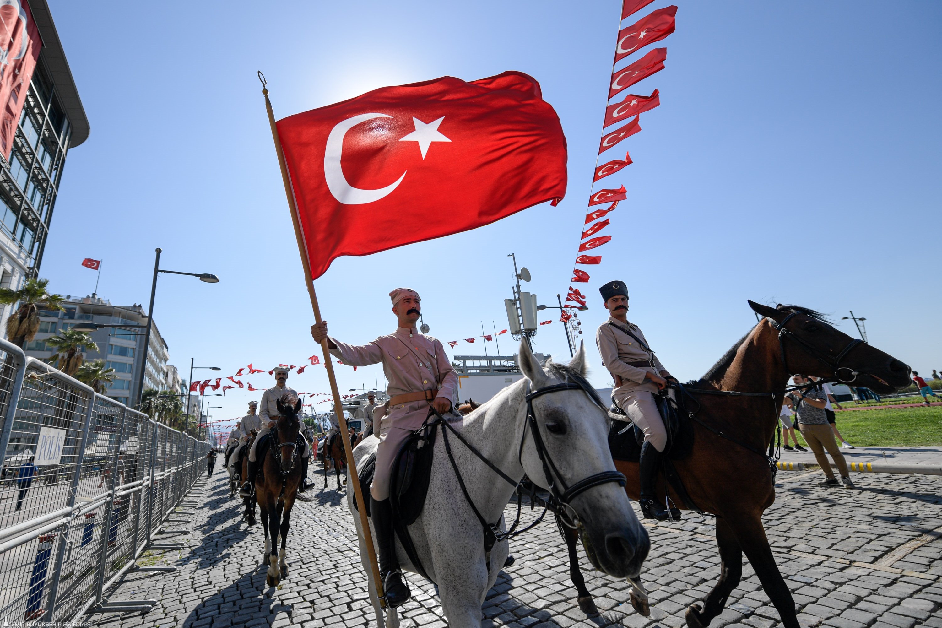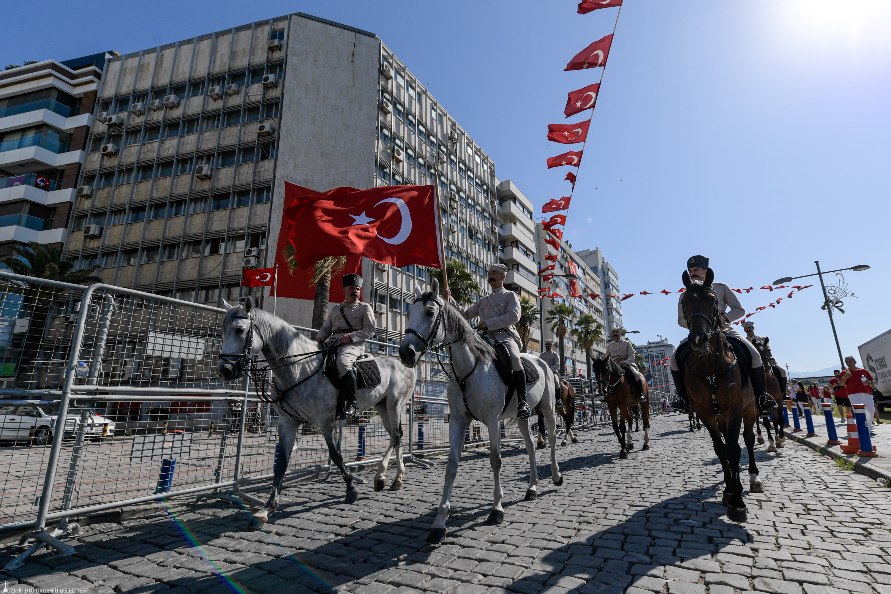 100 yıl önceki gibi süvari birlikleri İzmir sokaklarında