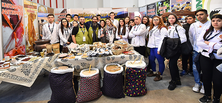 3. Uluslararası Gastronomi Kongresi’nde, Gaziantep Büyükşehir Belediyesi, Edirne Belediyesi, Kastamonu Belediyesi ve Hatay Büyükşehir Belediyesi, destinasyon sponsorluklarıyla yöresel lezzetlerini katılımcılarla buluşturuyor. Kongrede ziyaretçiler İzmir'in boyozunu, Gaziantep’in lahmacun, baklava ve kebap çeşitlerini, Hatay’ın künefesini, Edirne’nin ciğerini, Kastamonu’nun çekme helvası ve oğmaç çorbası gibi kendine has lezzetlerini tatma imkanı buluyor.