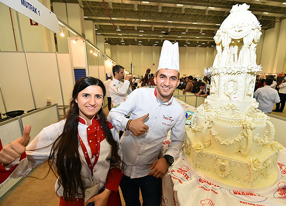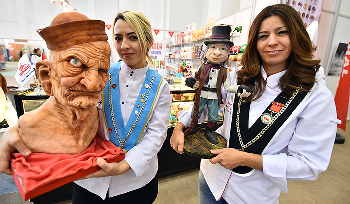 Kongre kapsamında düzenlenen yarışmalarda genç şefler de yeteneklerini sergiliyor. Sunumu sanata dönüştüren pasta ustalarının şeker hamurundan yaptığı heykeller görenleri hayran bırakıyor.