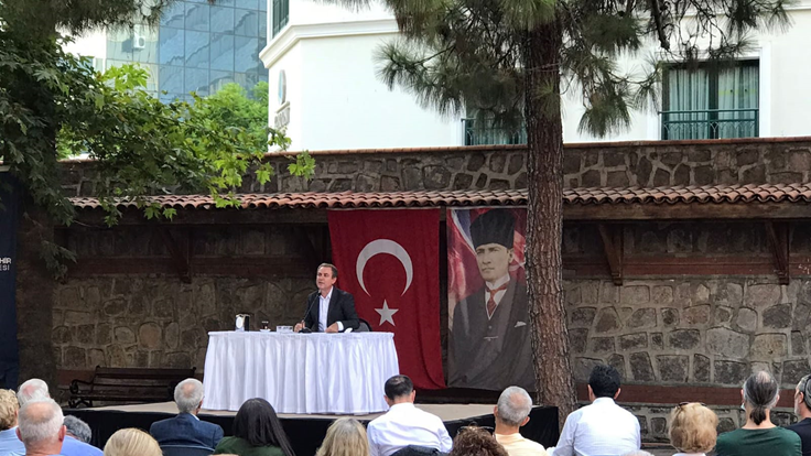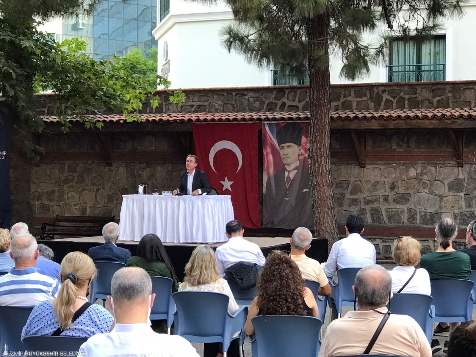 Ziyaretçilerin sergi alanını gezmesinin ardından Sinan Meydan'ın katılımıyla "Tam Bağımsızlık ve Lozan" söyleşisi salgın tedbirlerine uyularak yapıldı. Tarihçi ve Yazar Sinan Meydan, sözlerine Lozan'ı tekrar tekrar hatırlatan etkinliklere imza atan İzmir Büyükşehir Belediyesi'ne teşekkür ederek başladı. Tarihi doğru öğrenmenin ve aktarmanın, Türkiye'nin içinde bulunduğu süreç açısından çok ciddi öneme sahip olduğunu ifade eden Sinan Meydan, şunları kaydetti: