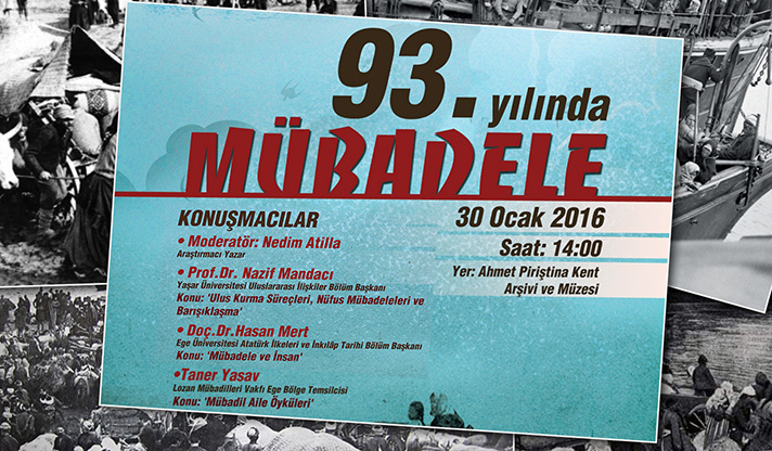 Kent tarihi ve kültürü açısından önemli çalışmalara imza atan İzmir Büyükşehir Belediyesi Ahmet Piriştina Kent Arşivi ve Müzesi (APİKAM), “93. Yılında Mübadele” konulu panele ev sahipliği yapacak. 30 Ocak Cumartesi günü saat 14.00’da APİKAM Toplantı Salonu’nda düzenlenecek panelin moderatörlüğünü gazeteci-yazar Nedim Atilla üstlenecek. Ege Üniversitesi Tarih Bölümü Öğretim Üyesi Doç. Dr. Hasan Mert “Mübadele ve İnsan”, Yaşar Üniversitesi Uluslararası İlişkiler Bölümü Öğretim Üyesi Prof. Dr. Nazif Mandacı “Ulus Kurma Süreçleri, Nüfus Mübadeleleri ve Barışıklaşma”, Lozan Mübadilleri Vakfı Ege Temsilcisi Taner Yasav ise “Mübadil Aile Öyküleri” başlığı altında konuşacak.