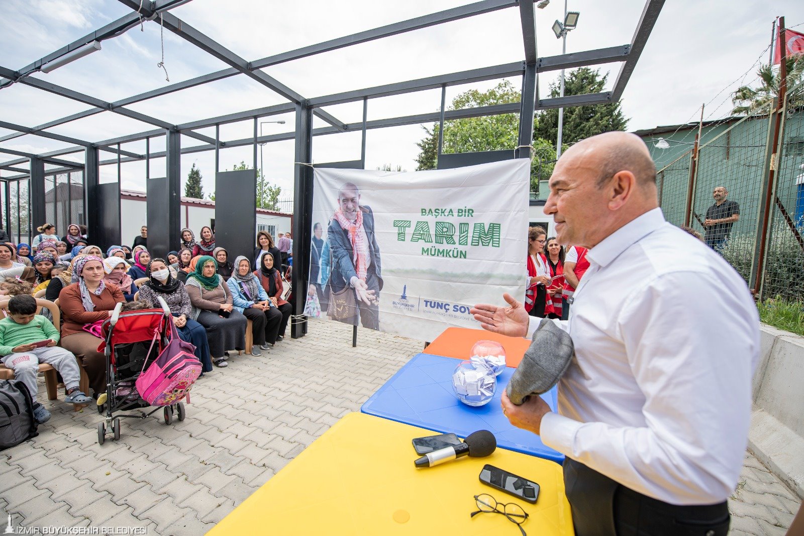 Kadınlarla sohbet eden Başkan Tunç Soyer, mahalle bostanı konusunda farklı çalışmalar yaptıklarını belirterek, “Bu yıl yeni bir şey daha ilave ediyoruz. Ürettiklerinizi siz tüketiyorsunuz. Ama satmak isterseniz biz satın alacağız. Aile ekonomisine belki bir katkımız olur diye düşünüyoruz. Her ne üretirseniz, onu kendi mutfağınızda değerlendirebilirsiniz. Bu memlekette üretmek, aile ekonomisine katkı verebilmek çok kıymetli. Bu kararı verdiğiniz için hepinize teşekkür ediyorum” dedi.