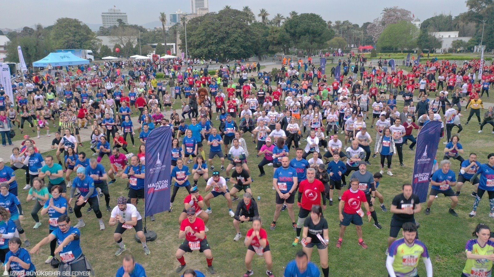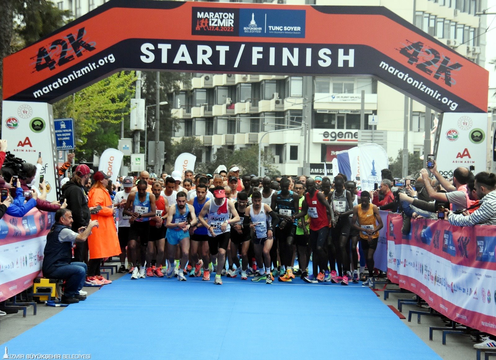 Birleşmiş Milletler’in “Sürdürülebilir bir Dünya” için belirlediği 17 Küresel Amaç doğrultusunda “Atıksız Maraton” hedefiyle koşulan 42 kilometrelik uluslararası yarışa 43 farklı ülkeden 500’ün üzerinde koşucu katıldı. 10 kilometrelik yarışta ise 5 bine yakın sporcu start aldı. Dünya Atletizm Federasyonu’nun Road Race Label (Uluslararası Yol Koşusu Sertifikası) unvanı verdiği Maraton İzmir’in startını, İzmir Büyükşehir Belediyesi Genel Sekreter Yardımcısı Ertuğrul Tugay, Türkiye Atletizm Federasyonu Başkanı Fatih Çintimar, İzmir Büyükşehir Belediyesi Gençlik ve Spor Hizmetleri Dairesi Başkanı Hakan Orhunbilge ve İzmir Büyükşehir Belediyesi Gençlik ve Sor Kulübü Başkanı Ersan Odaman birlikte verdi.