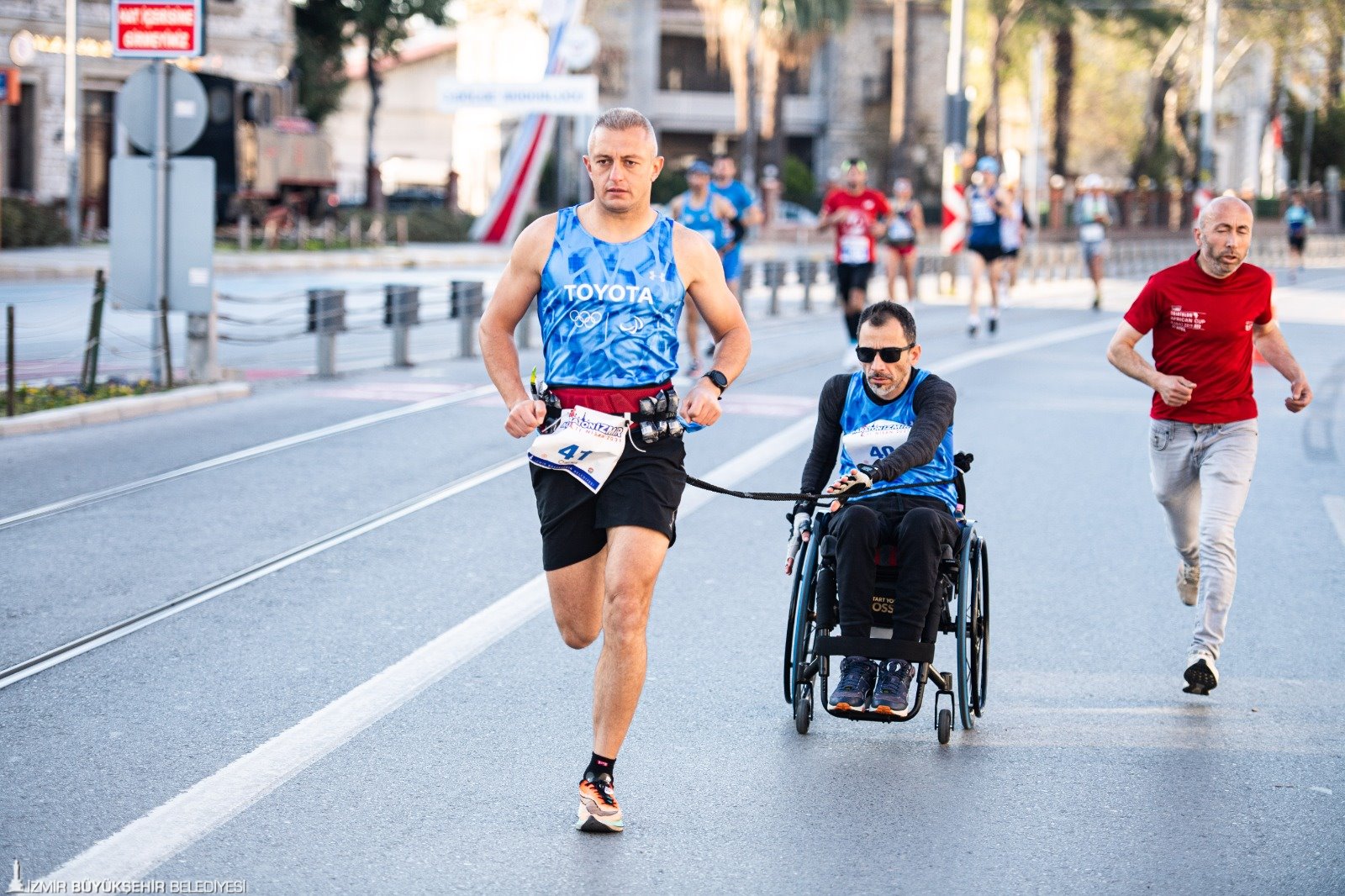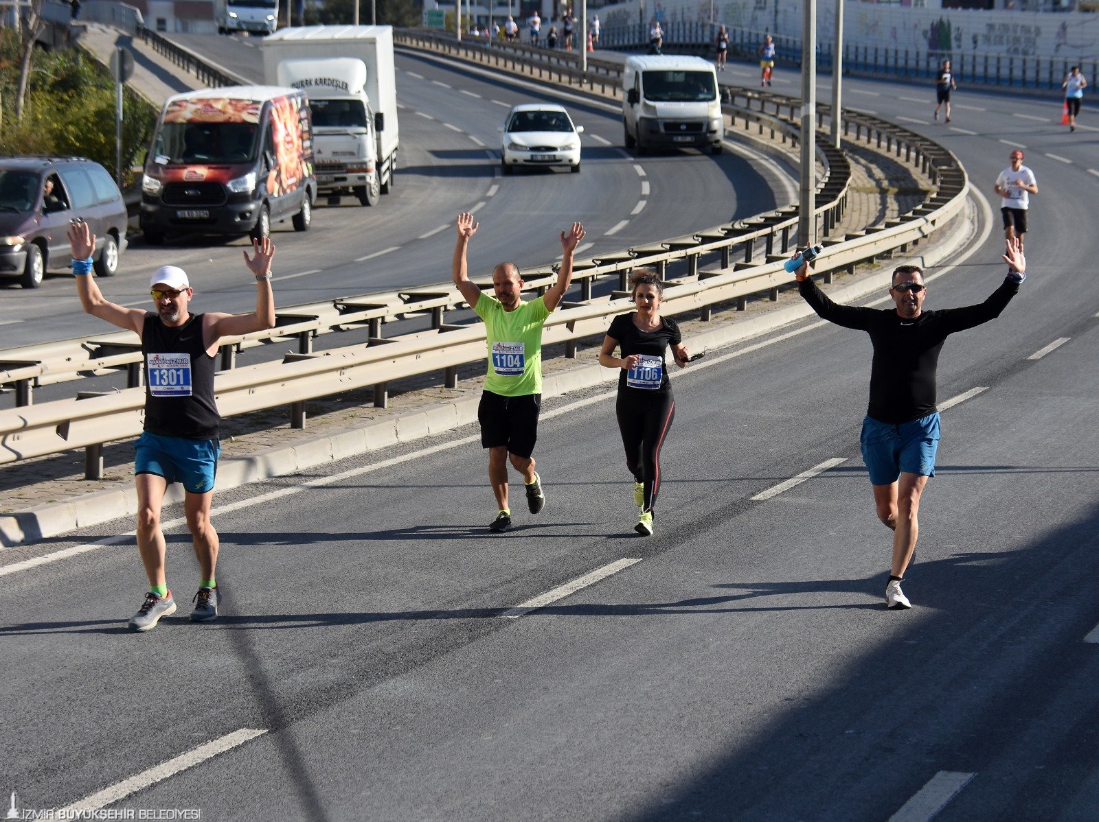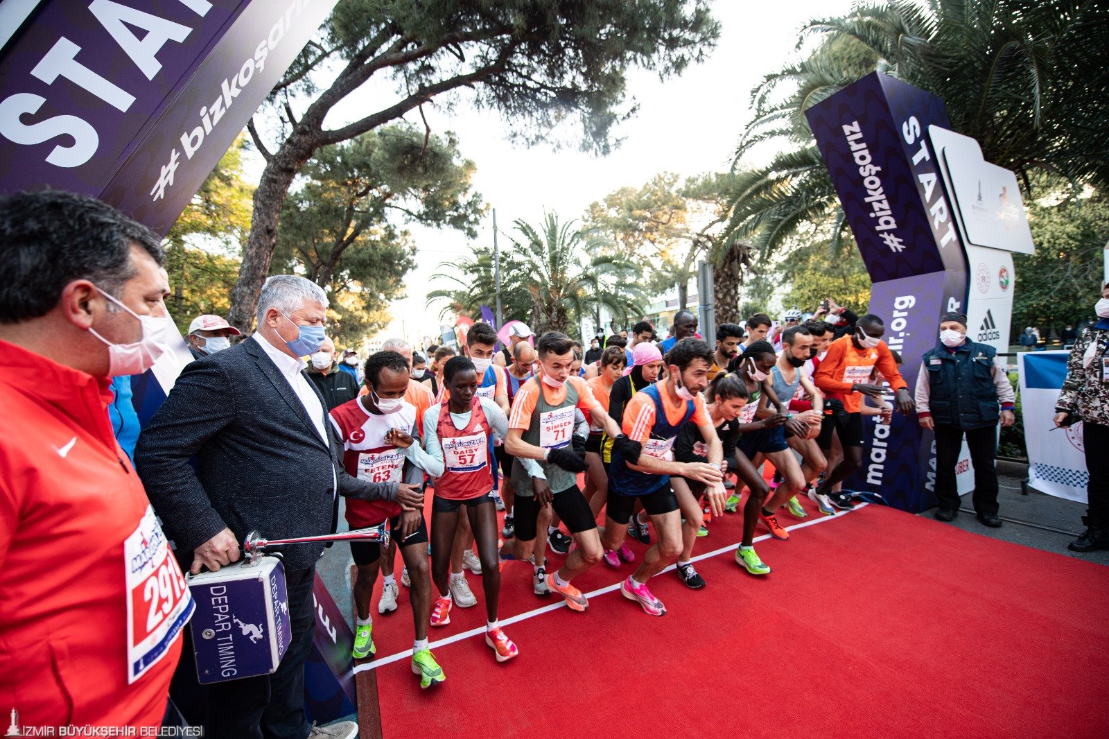 Maratonİzmir’de İzmir Büyükşehir Belediyesi Genel Sekreter Yardımcısı Ertuğrul Tugay, İzmir Büyükşehir Belediyesi Gençlik ve Spor Dairesi Başkanı Hakan Orhunbilge, İzmir Büyükşehir Belediyespor Başkanı Ersan Odaman, İzmir Gençlik ve Spor İl Müdürü Murat Eskici, İzmir Spor Kulüpleri Birliği Vakfı Başkanı Ali Erten, Göztepe Kulübü Başkan Vekili Talat Papatya, Milliyet Ege Bölge Temsilcisi Engin Uğur Ağır ile TSYD İzmir Şubesi Başkanı Bahri Okumuş da koştular.