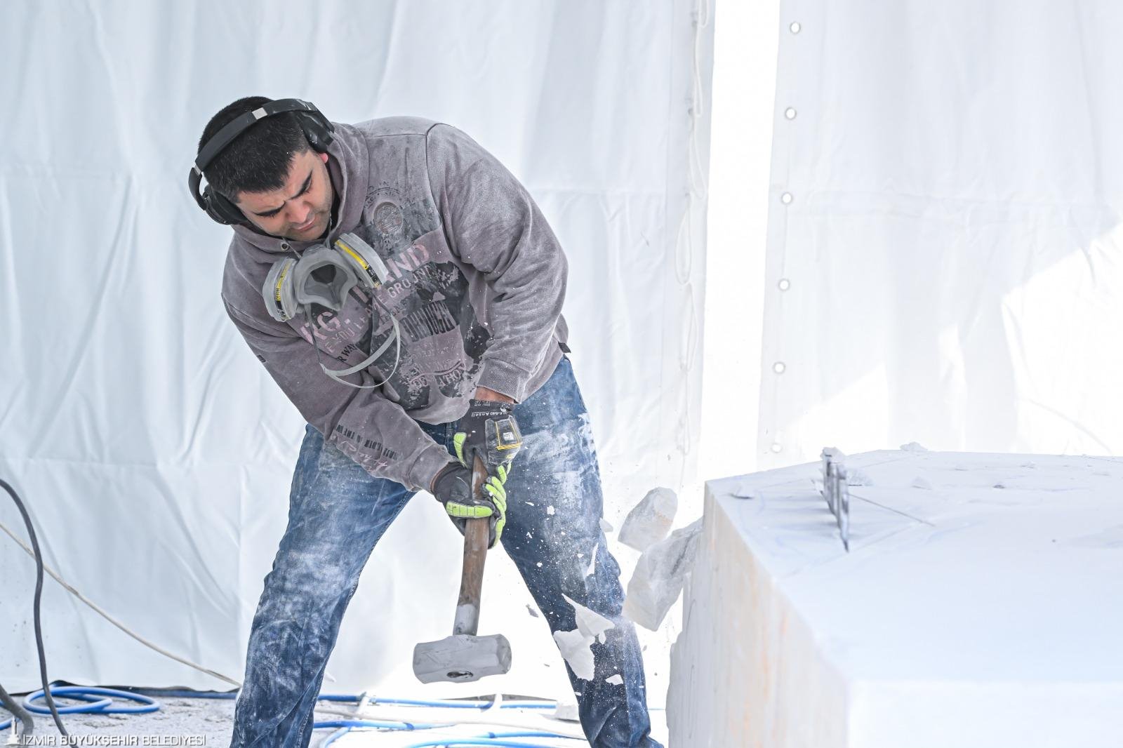 İzmir Büyükşehir Belediyesi ev sahipliğinde, İZFAŞ tarafından düzenlenen Marble İzmir Fuarı kapsamında gerçekleştirilen Heykel Çalıştayı ile mermerin fuar alanının dışına taşarak kentle buluşması hedefleniyor. İzmir Büyükşehir Belediye Başkanı Dr. Cemil Tugay’ın önerisiyle hayata geçirilen çalıştayda heykeltıraşlar, canlı üretim modeliyle mermer blokları işlemeye başladı. Üretim süreçleri ziyaretçilere açık olacak; sanatseverler doğal taşın sanat eserine dönüşümünü yerinde izleyebilecek. Küratörlüğünü heykeltıraş Ekin Erman’ın yürüttüğü Heykel Çalıştayı’nda, Türkiye’nin farklı kentlerinden gelen değerli sanatçılar Bahadır Hızol, Çağdaş Erçelik, Dilşad Akçayöz, Orhan Gazi Keskin, Özkan Arslan ve Tonguç Sercan mermer bloklar üzerinde üretimlerini sürdürüyor.