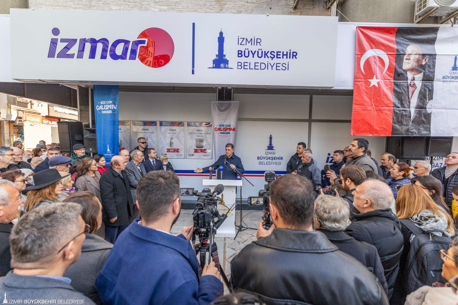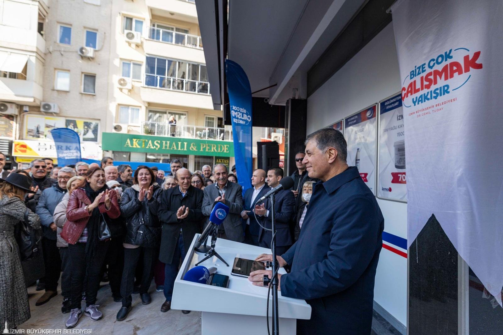 Açılışta İZMAR projesinin önemine değinen İzmir Büyükşehir Belediye Başkanı Dr. Cemil Tugay, İZMAR mağazalarına kentin dört bir yanından yoğun talep geldiğini söyledi. Bu mağazaların vatandaşların bütçelerine önemli katkı sağladığını belirten Tugay, yurttaşların sağlıklı ve güvenilir ürünlere uygun fiyatlarla ulaşabildiğini ifade etti. Talepler doğrultusunda yeni mağazalar açmayı planladıklarını kaydeden Başkan Tugay, İzmir’in geçmişinde önemli bir yeri olan Tansaş geleneğine de dikkat çekti. Tugay, “İzmir’in bir Tansaş geleneği vardı; hepimizin hayatındaydı. İnsanlar o dönem Tansaş’tan alışveriş yapmayı tercih eder, ‘kazanacaksa belediye kazansın’ derdi. Çünkü daha güvenilir ürünler aldıklarını bilirlerdi. Bugün benzer bir anlayışı hayata geçiriyoruz. Tansaş adını kullanmak istedik ancak satıldığı için kullanamadık. Bu nedenle mağazalarımızı İZMAR adıyla açıyoruz. Logosu da bu geleneği çağrıştırıyor” dedi. Marketçilik yapma gibi bir niyetlerinin olmadığını vurgulayan Tugay, sözlerini şöyle sürdürdü: “Biz marketçiliğe hevesli değiliz. Mecbur olmasaydık, insanlarımızın böyle bir ihtiyacı olmasaydı bu işe hiç girmezdik. Bugün herkes zincir marketlerin esiri olmuş durumda. Üç-beş büyük zincir piyasayı elinde tutuyor ve fiyatları dilediği gibi yönlendiriyor. Aralarında gerçek bir rekabet de yok. Üretici hakkını alamıyor. Bu durum kabul edilemez; seyirci kalacağımız bir tablo değil.”