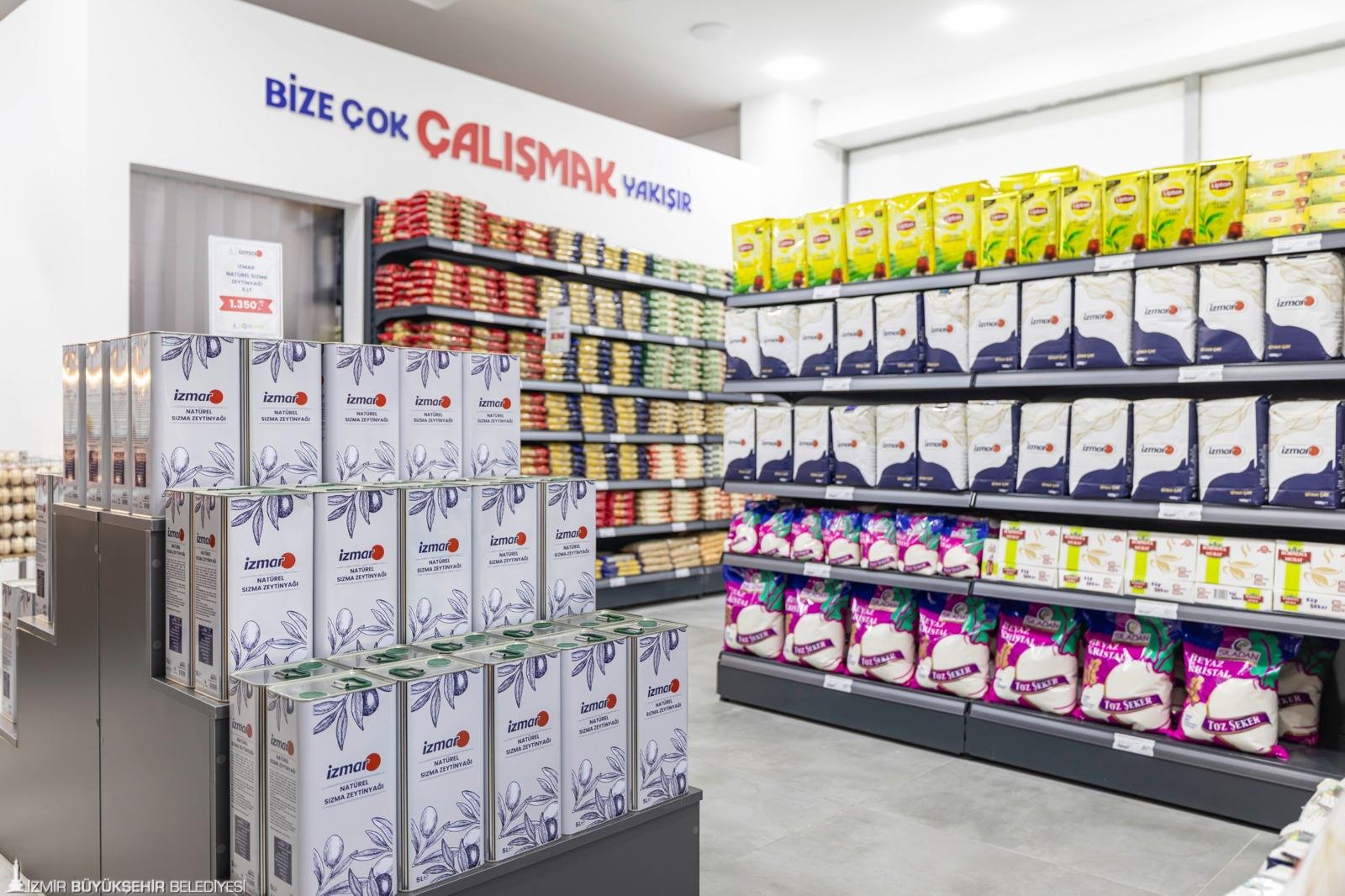 İzmir Büyükşehir Belediyesi’nin iştiraki İZTARIM AŞ tarafından hizmet veren İZMAR mağazalarında, yerli üreticiden temin edilen ürünler aracısız olarak yurttaşlarla buluşuyor. Bu kapsamda, İzmir Büyükşehir Belediyesi’nin tamamen yerli üreticiden satın alarak 100. Yıl Bayındır Süt Fabrikası’nda işlediği süt ve süt ürünleri ile Ödemiş Et Entegre Tesisi’nde işlenen et ve et ürünleri İZMAR raflarında yer alıyor. Ayrıca Şaşal Su ve Halk Ekmek ürünlerinin de satışa sunulduğu İZMAR’da, gıdadan temizlik ürünlerine kadar bir evin ihtiyaç duyduğu temel tüketim ürünleri bulunuyor. Kooperatiflerden temin edilerek hazırlanan uygun fiyatlı ürünler de halkın beğenisine sunuluyor.
