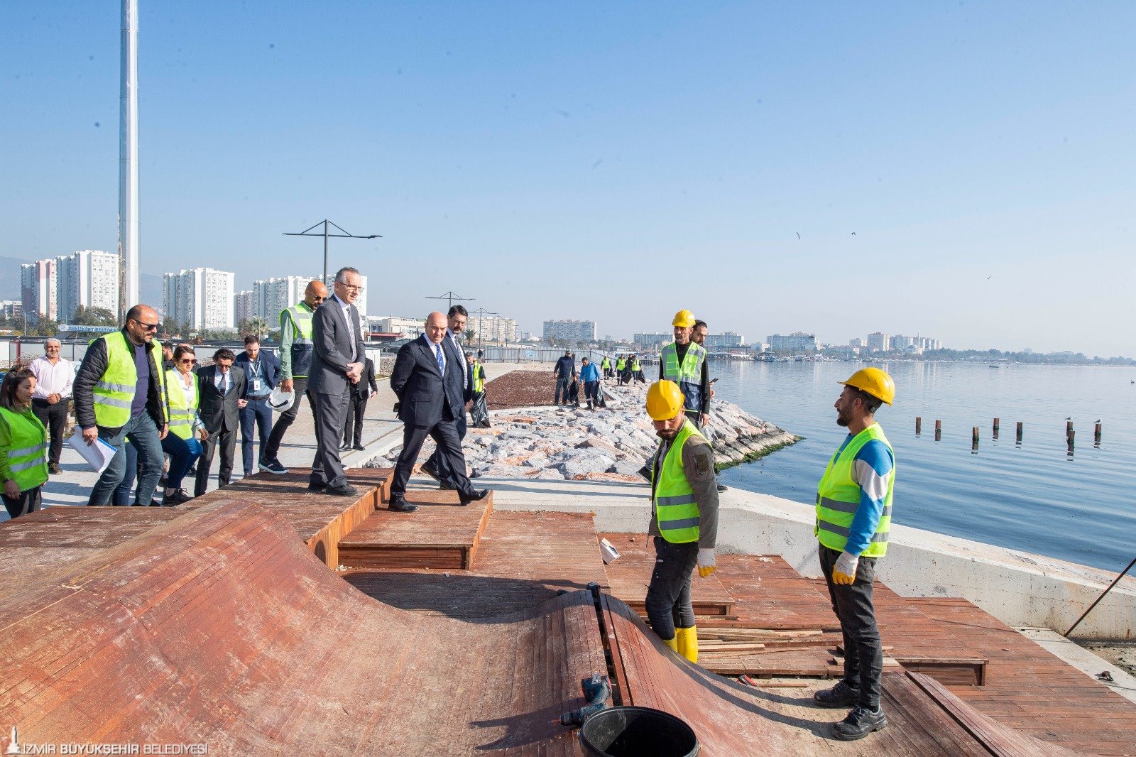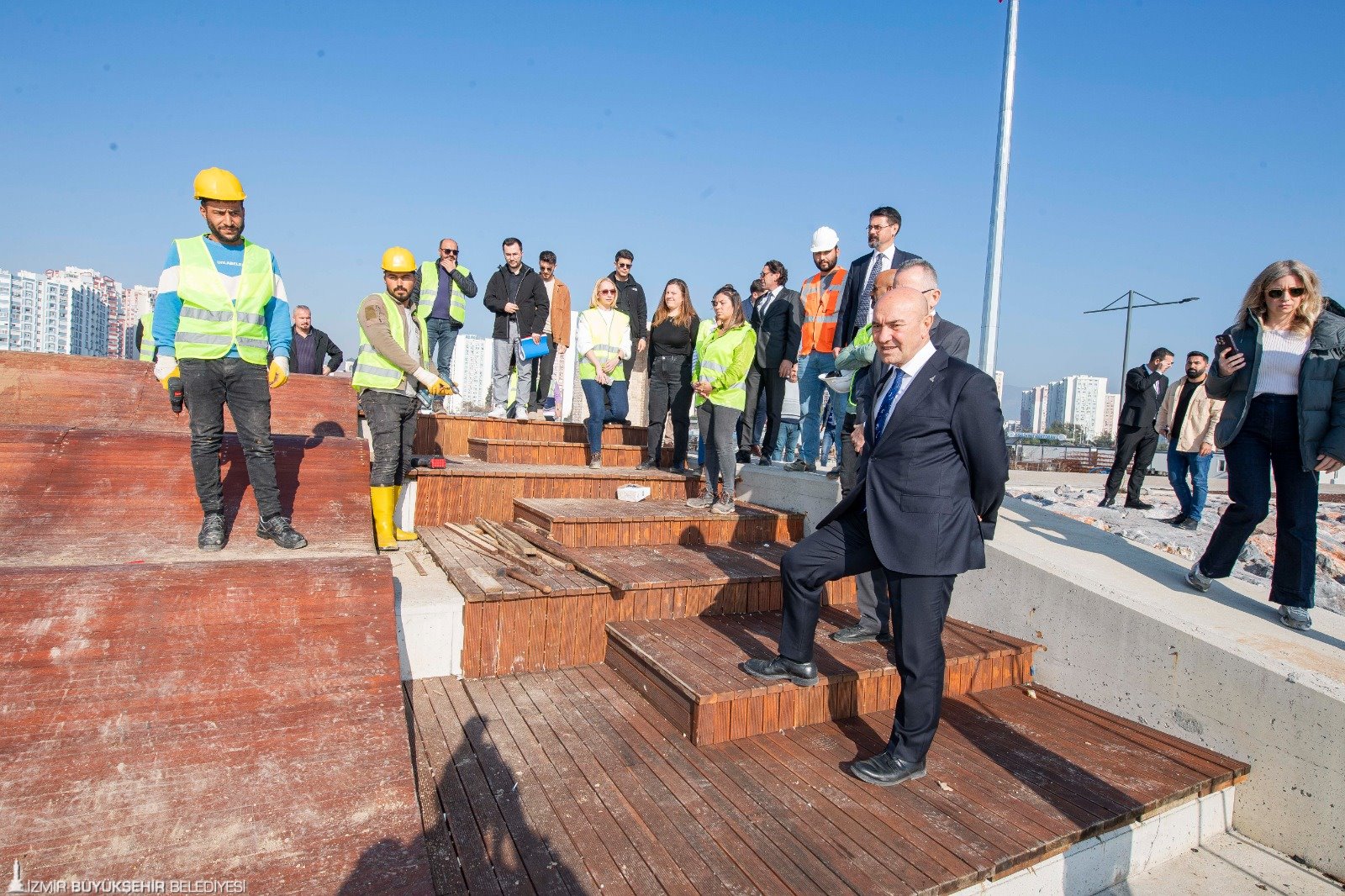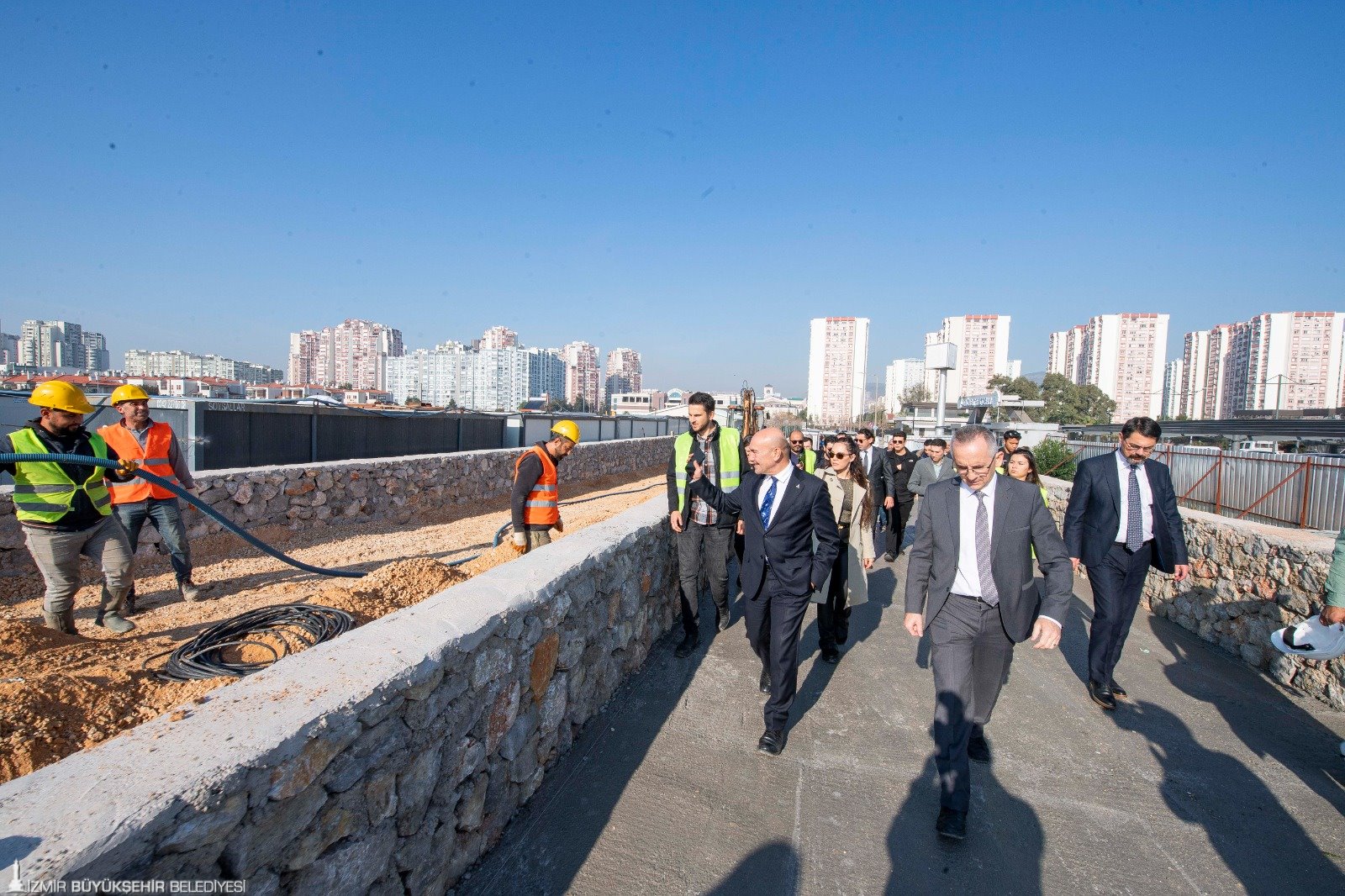 2024 yılının ilk çeyreğinde hizmete alınması hedeflenen parkı ziyaret eden Başkan Tunç Soyer,