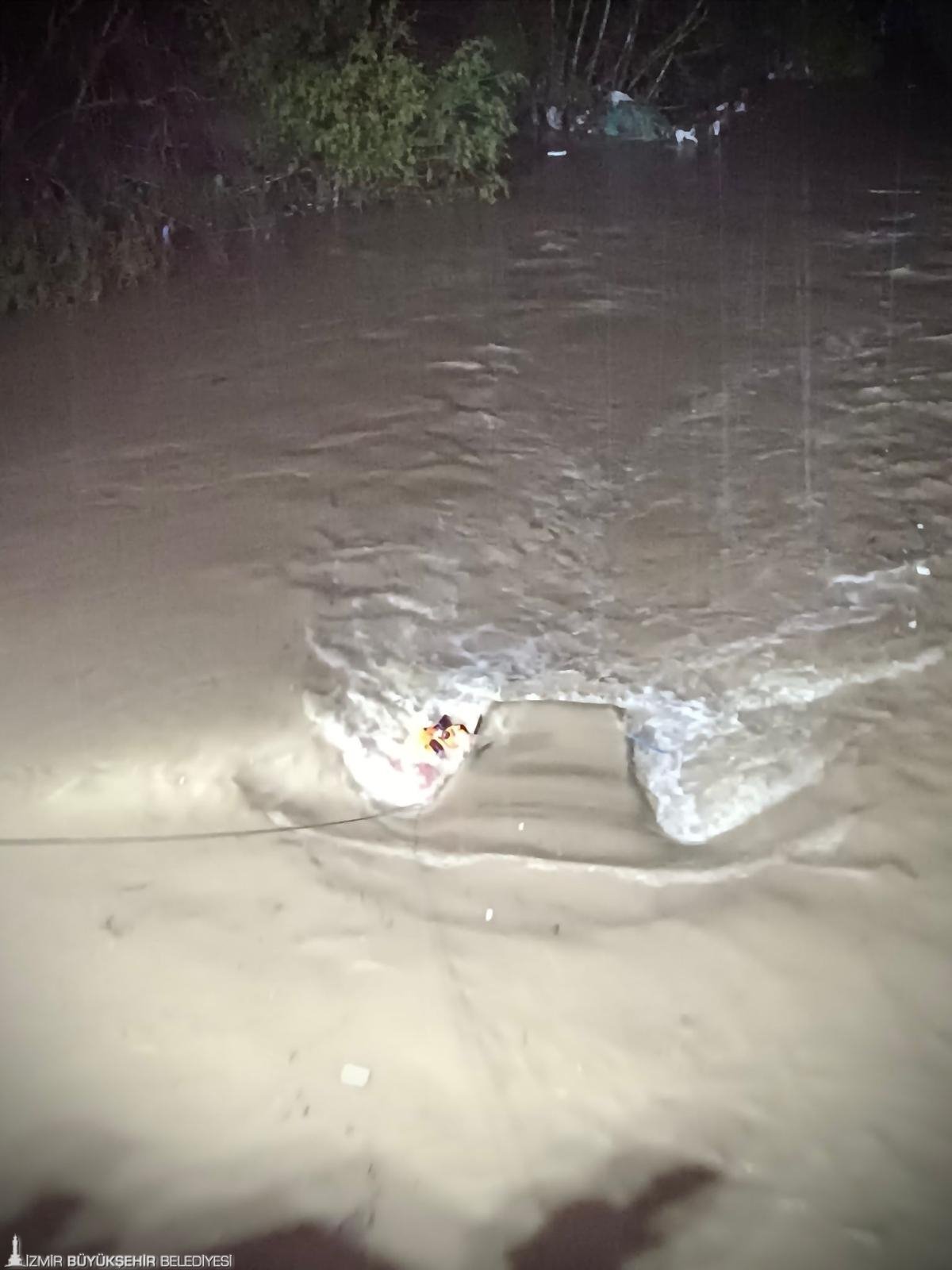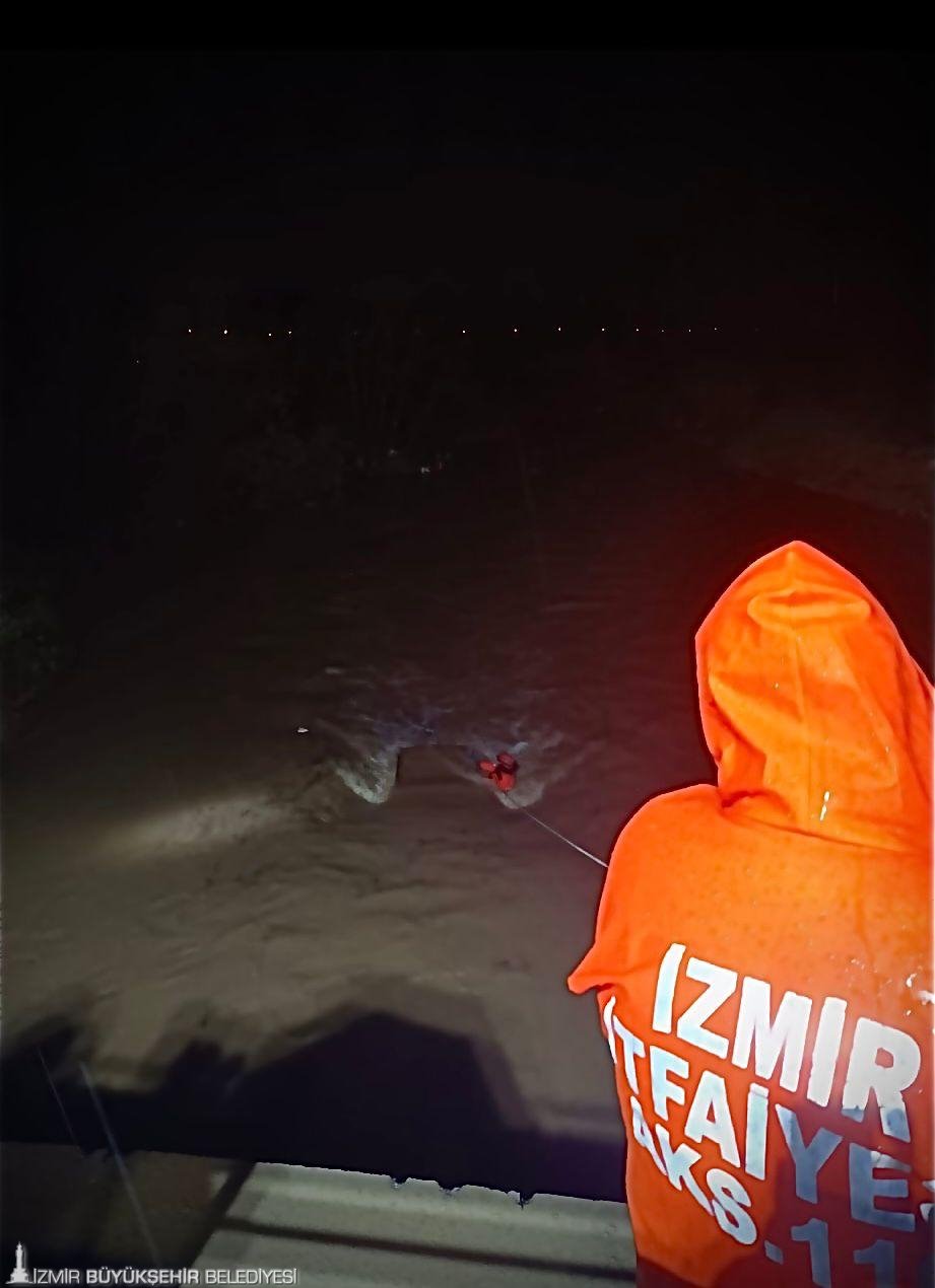 İzmir’in Menderes ilçesine bağlı Develi Mahallesi’nde 28 Mart saat 22.00 sıralarında meydana gelen kazada, bir otomobil dereye yuvarlandı. İzmir Büyükşehir Belediyesi İtfaiyesi ihbar üzerine kısa sürede olay yerine 2 kurtarma aracı, bir bot ve 8 personel ile müdahale etti Ekipler, aracın camını kırarak üstüne çıkan ve yardım bekleyen kişiyi bulunduğu yerden kurtardı. Yaralı, sağlık ekiplerine teslim edilerek hastaneye sevk edildi. Kurtarma çalışmasının ardından itfaiyenin su altı ve su üstü arama kurtarma ekipleri, araçta veya çevresinde başka bir kişi ya da canlı olup olmadığını kontrol etti. Kazadan kurtarılan ve erkek olduğu öğrenilen vatandaşın sağlık durumunun iyi olduğu bildirildi.