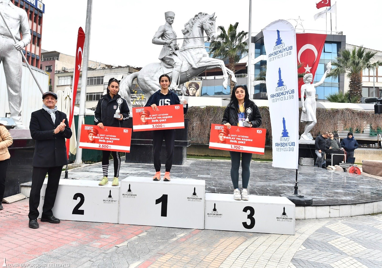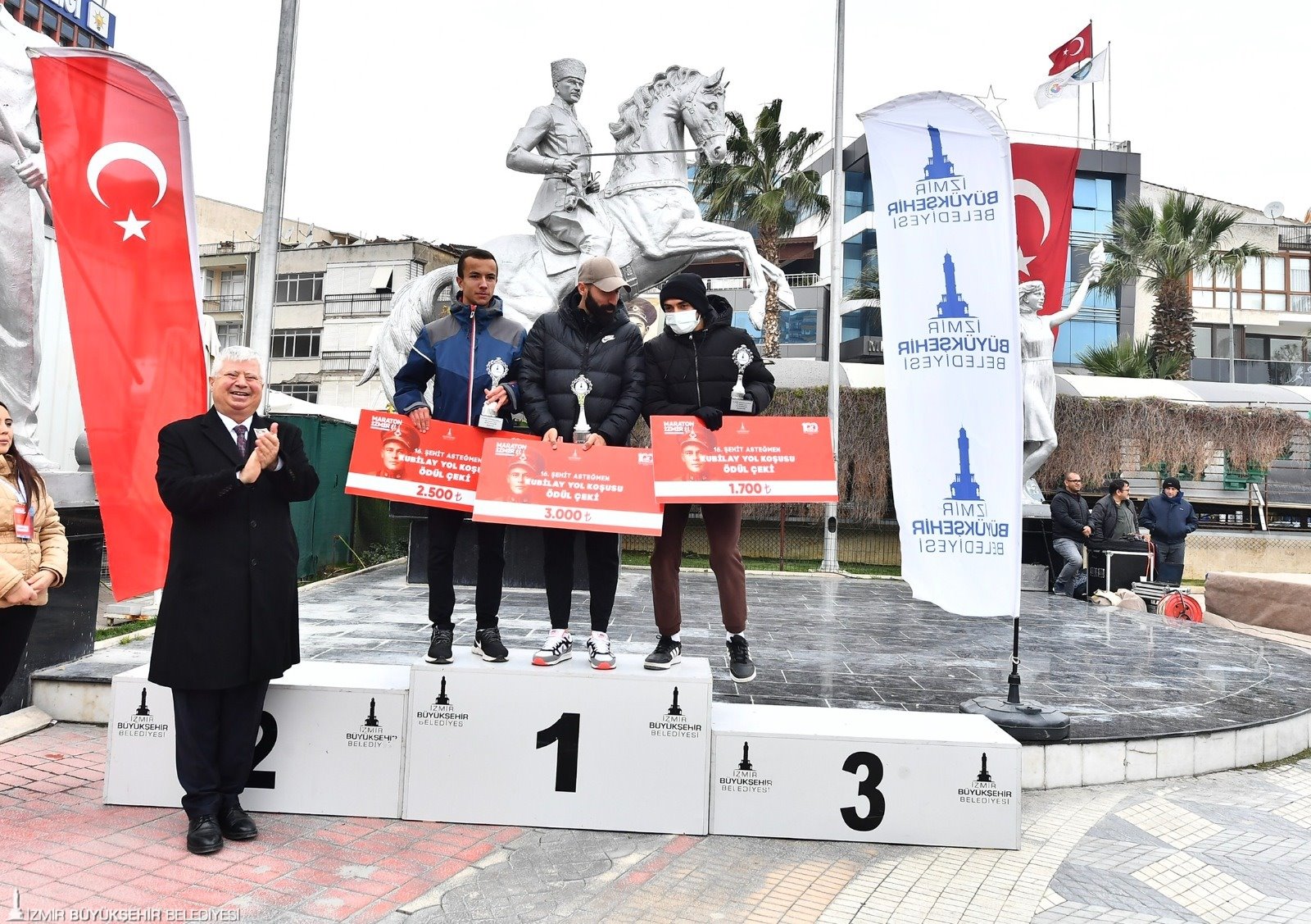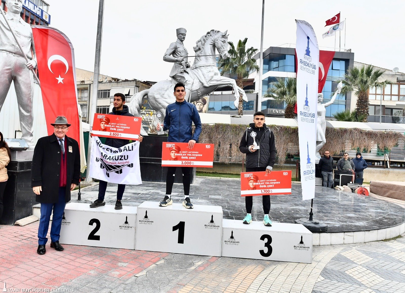Genç erkeklerde Kerem Can Çelik birinci oldu. Emir Salih Karakuzu ikincilik, Erhan Taç üçüncülük elde etti. Genç kadınlarda Esmanur Yılmaz birincilik kürsüsüne çıkarken, Rojin Selgi ikinci, Hanife Tüfekçi üçüncülüğü aldı. Dereceye girenlere ödüllerini İzmir Belediye Başkan Vekili Mustafa Özuslu, Genel Sekreter Yardımcısı Ertuğrul Tugay, İzmir Büyükşehir Belediyesi Milli Bayramlar Komitesi Başkanı Ulvi Puğ ve İzmir Büyükşehir Belediyesi Gençlik ve Spor Hizmetleri Dairesi Başkanı Hakan Orhunbilge tarafından verildi.