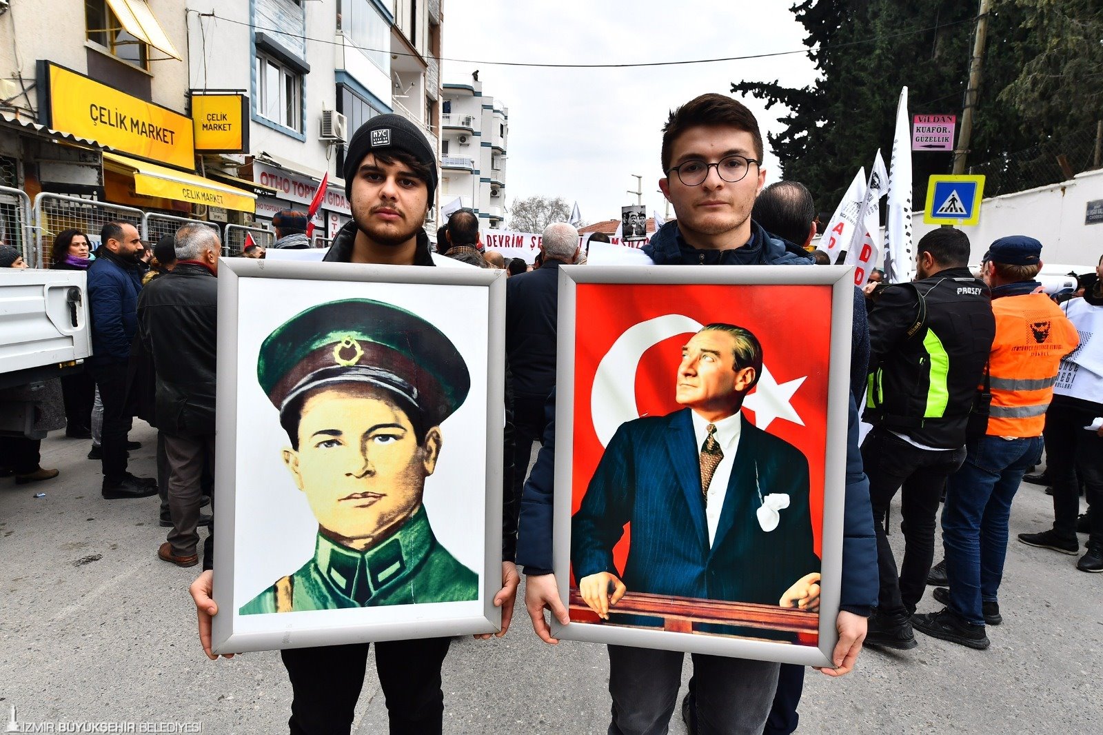 Menemen’de 1930 yılında Cumhuriyet karşıtları tarafından katledilen devrim şehitleri Asteğmen Mustafa Fehmi Kubilay ile Hasan ve Şevki beyler Menemen Olayı olarak tarihe geçen ayaklanmanın 92. yılında bir kez daha anıldı.