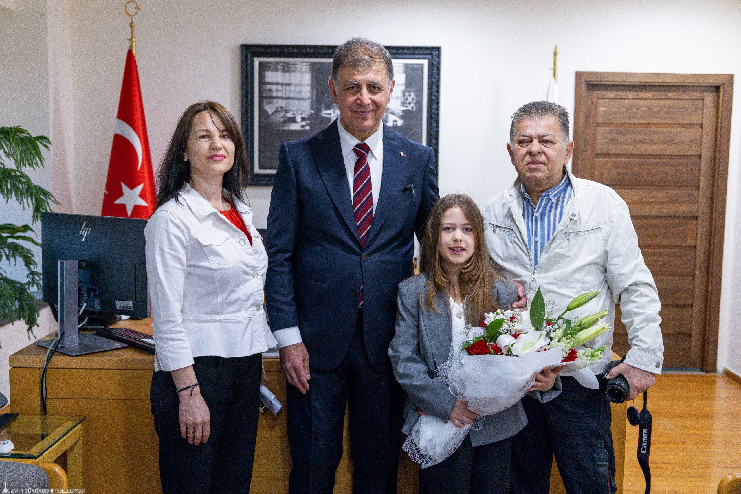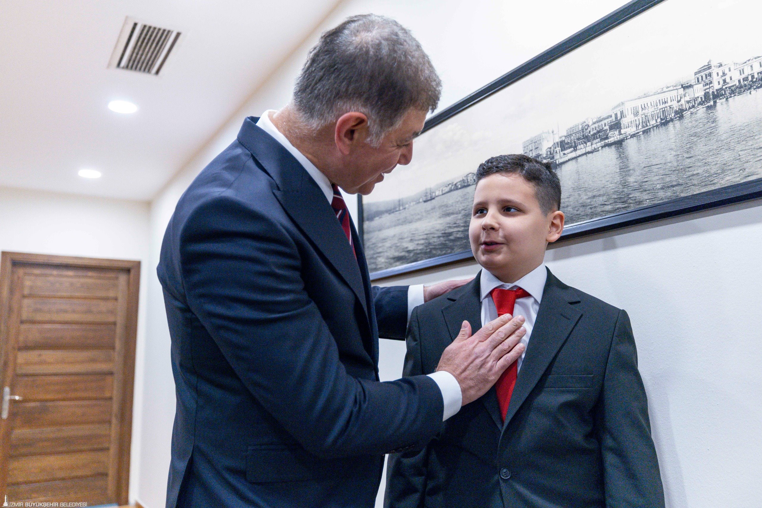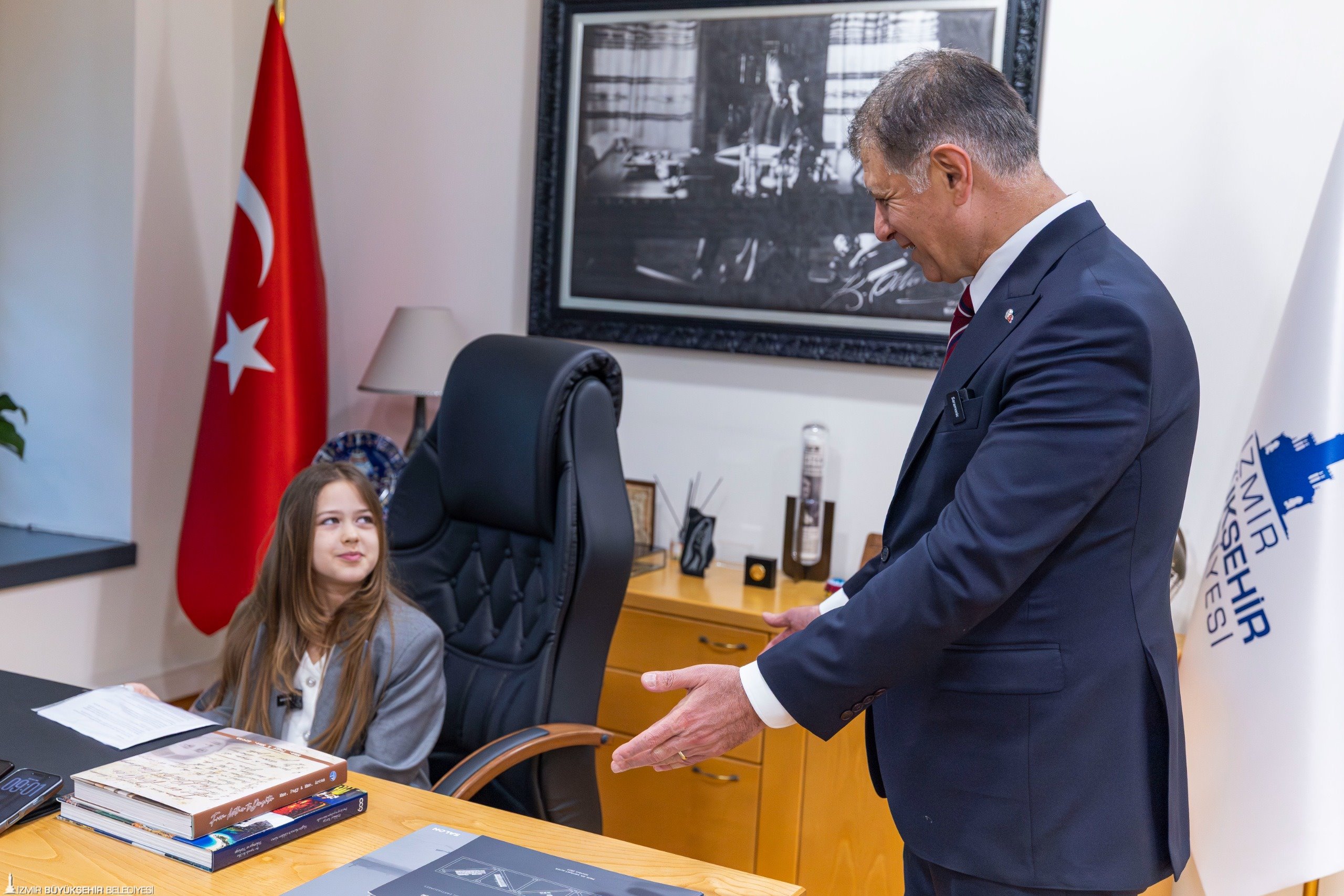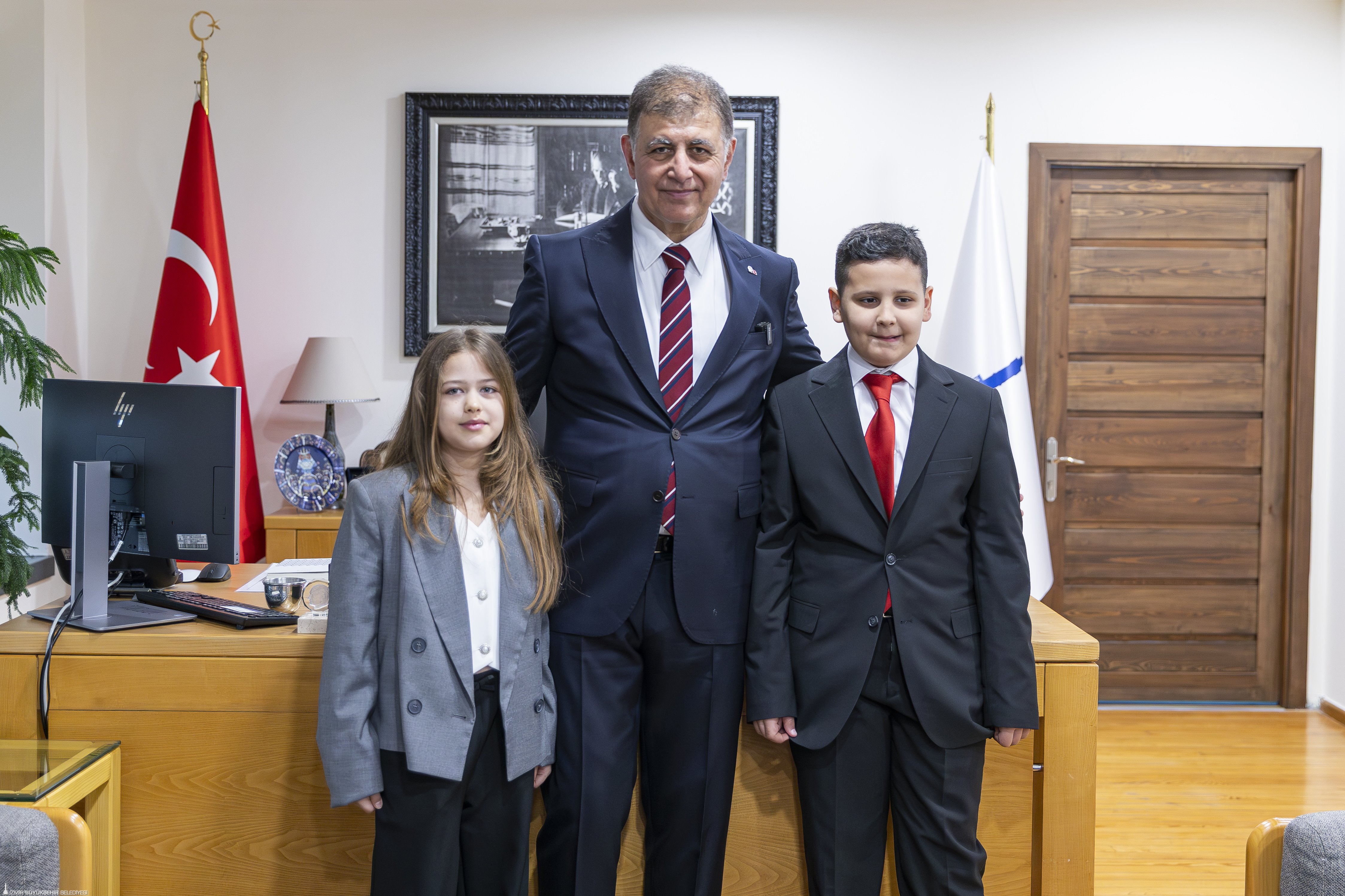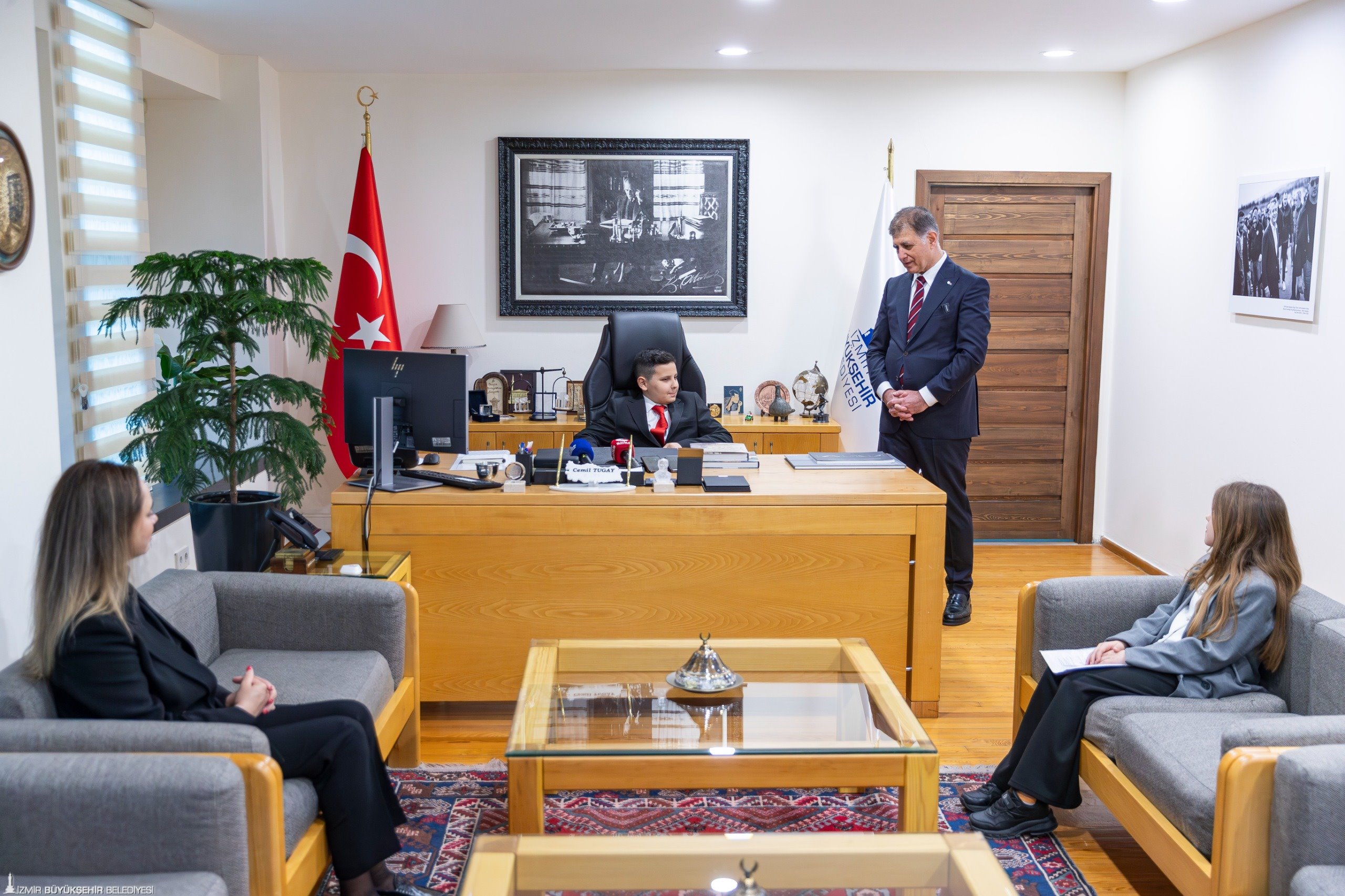İzmir Büyükşehir Belediye Başkanı Dr. Cemil Tugay, 23 Nisan Ulusal Egemenlik ve Çocuk Bayramı’nda koltuğunu 5. sınıf öğrencisi ve İzmir Çocuk Meclisi üyesi Meryem Günay ile 4. sınıf öğrencisi Aras İpek’e devretti. Minik başkanlar, eğitimden güvenliğe uzanan talepleriyle barış, sevgi ve umut dolu bir gelecek çağrısı yaptı.