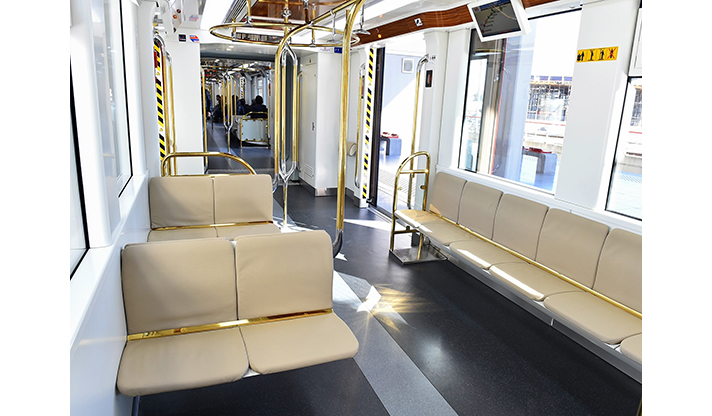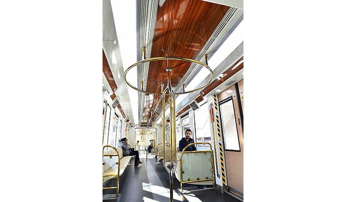 İzmir’in deniz kenti olması özelliğinden esinlenilerek tasarlanan yeni trenlerde "yat konsepti" ön plana çıktı. Ahşap görünümlü özel malzeme ve parlak metalin birlikte kullanıldığı araçlar, ışıltılı görünümüyle yolcuların beğenisini topladı.