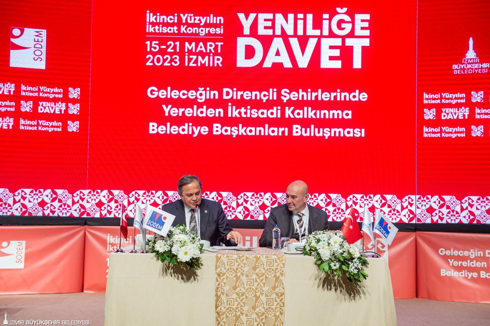 “Yeniliğe Davet” başlığıyla yapılan ve tüm Türkiye’yi geleceği inşa etmeye çağıran İkinci Yüzyılın İktisat Kongresi’nin altıncı gününde Millet İttifakı belediye başkanları İzmir’de buluştu. Belediye başkanları, Kültürpark’taki İsmet İnönü Sanat Merkezi’nde toplandı ve İkinci Yüzyılın İktisat Kongresi çalışmalarını değerlendirdi. Başkanlar, geleceğin dirençli şehirlerinde yerel iktisadi kalkınma modellerini de tartıştı.