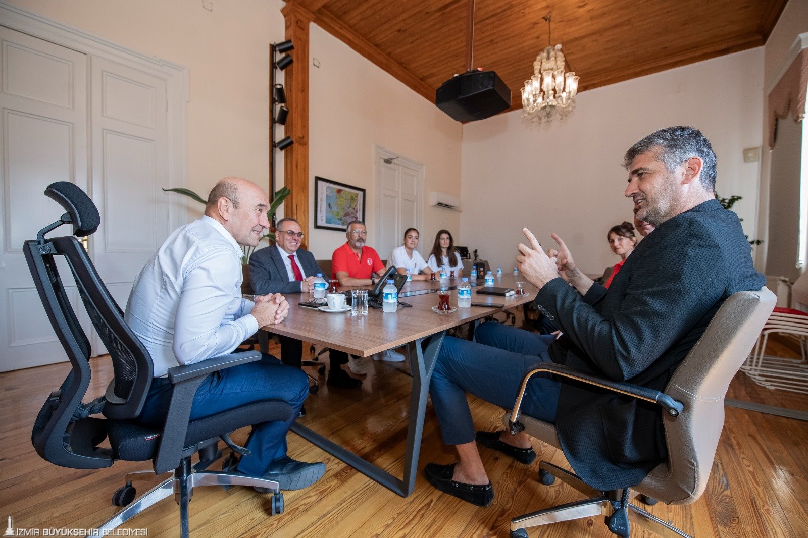 Milli takım oyuncularının her biriyle iftihar ettiklerini dile getiren Başkan Tunç Soyer, “Sizlerle gurur duyuyoruz, umutluyuz. Pırıl pırıl çocuklarımız var. Bir parça da destek olabilirsek ne mutlu bize. Çok çalışıyorlar, istedikten sonra bu kararlılıkla her şey olur. Biz de pürüzsüz ev sahipliği yapmak zorundayız. Bu maçı alacaksınız, gözlerinizde görüyorum. Bu maçı alın diğer maçta söz veriyorum sizleri izlemeye geleceğim. Yolunuz açık olsun. Tüm kalbimle başarılar diliyorum. Geçten yıl FIBA U18 Erkekler Avrupa Şampiyonası’nda da başarılı bir organizasyona ev sahipliği yapmıştık. Biz gençlere inanıyoruz. Avrupa Gençlik Başkenti olma yolundayız ve sizlerin yol göstericiliği bizler için çok önemli ” dedi.