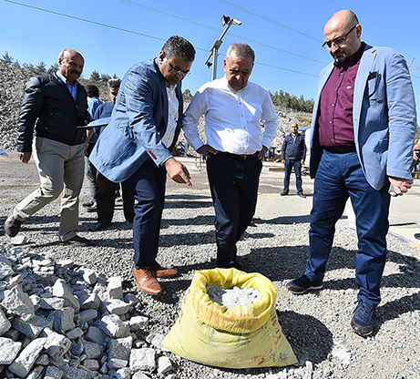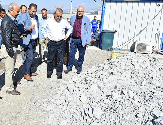 İZBETON'un Bornova'daki Berber Salih Geri Kazanım Tesisi’nde kurulan kırma makinesinin çalışmalarını yerinde inceleyen İzmir Büyükşehir Belediye Başkanı Aziz Kocaoğlu, saatte 250 ton üretim kapasitesine sahip olan kırma makinesi ile inşaat molozlarını atık olmaktan çıkarıp yeniden ekonomiye kazandırdıklarını söyledi.