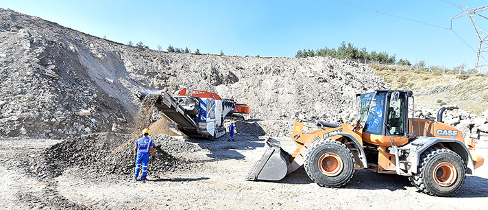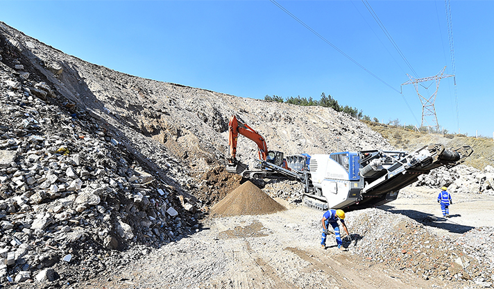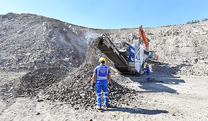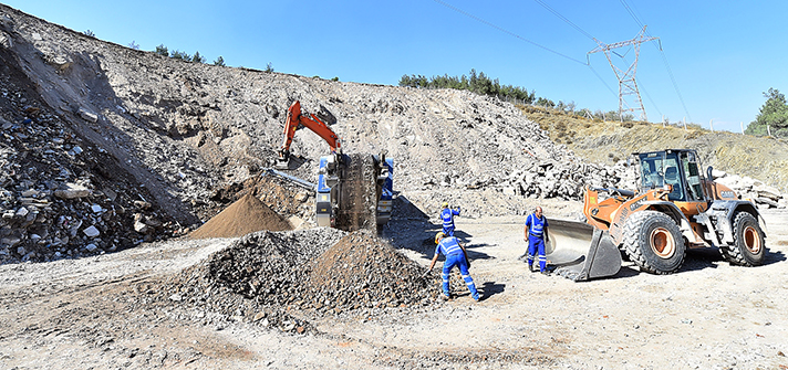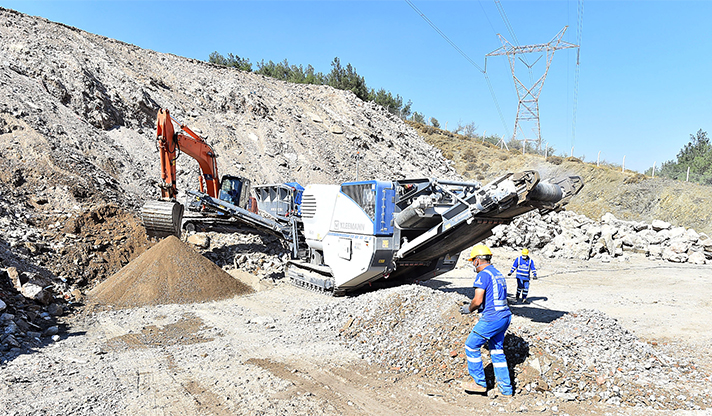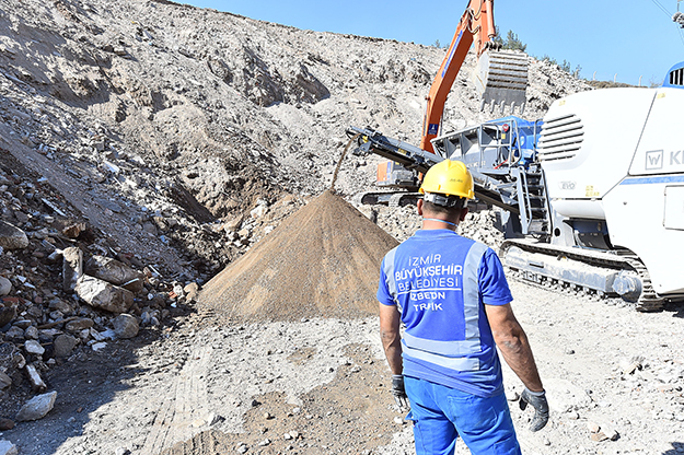 İzmir Büyükşehir Belediyesi'nin altyapı kuruluşu İZBETON Genel Müdürlüğü, kentin yol altı dolgu ihtiyacını atık malzemelerden karşılamak için üretim düğmesine bastı. "Geri dönüşüm" alanında örnek bir çalışma gerçekleştiren İZBETON, inşaat yıkıntı atıkları ve beton blokları ayrıştırarak yol altında kullanılan temel malzemeye dönüştürmeyi başardı.