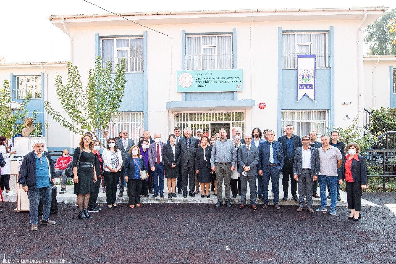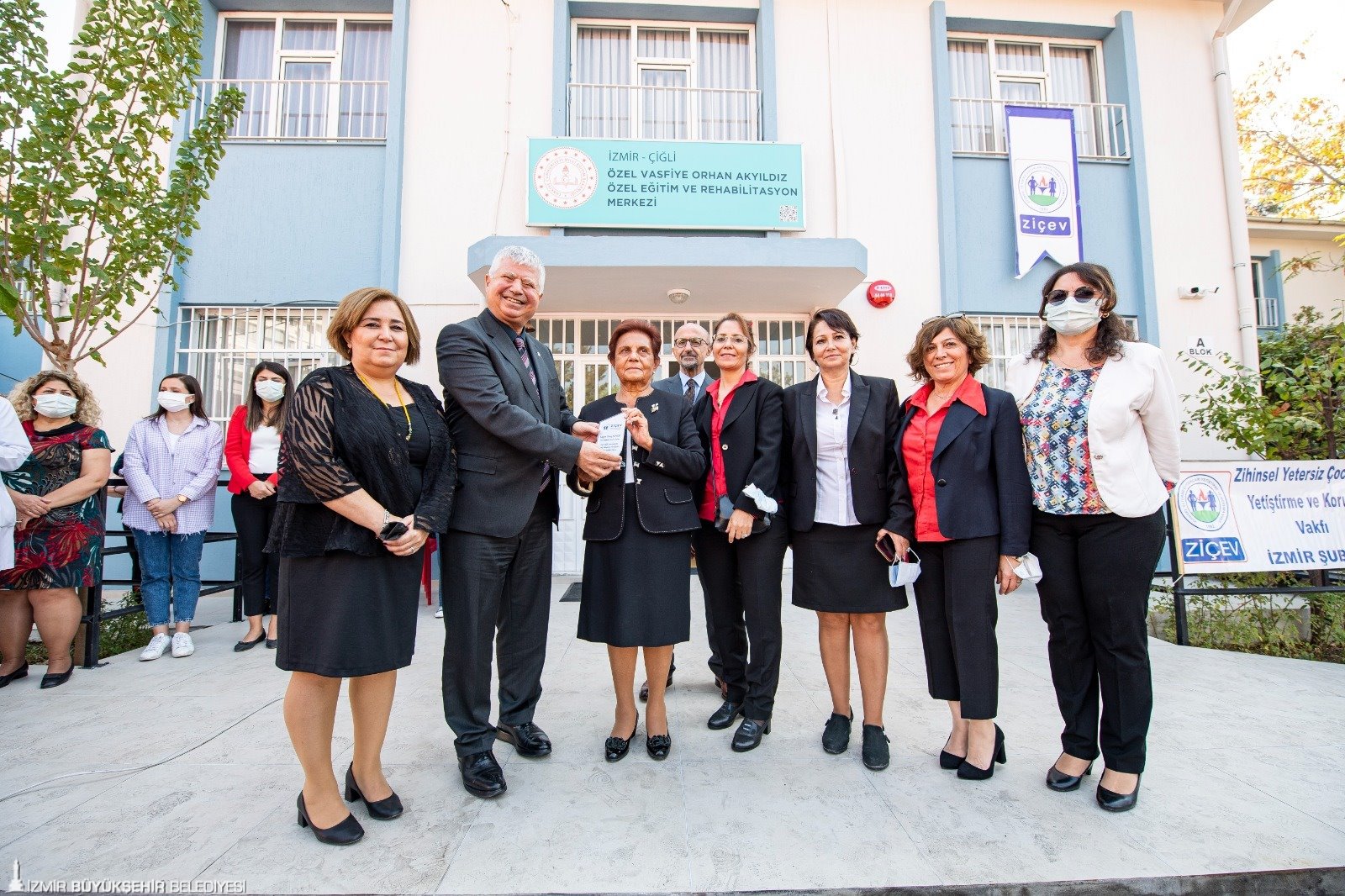 Özel çocukların iyi bir ortamda eğitim ve öğrenim görmesi için harekete geçen İzmir Büyükşehir Belediyesi Çiğli’deki Özel Vasfiye Orhan Akyıldız Özel Eğitim ve Rehabilitasyon Merkezi’ni yeniledi. Zihinsel Yetersiz Çocukları Yetiştirme ve Koruma Vakfı’na (ZİÇEV) ait merkez yenilenen yüzüyle hizmete alındı. Törene İzmir Büyükşehir Belediye Başkan Vekili Mustafa Özuslu, Çiğli Belediye Başkanı Utku Gümrükçü, Karşıyaka Belediye Başkanı Cemil Tugay, ZİÇEV Genel Başkanı Ülay Karakoç, ZİÇEV İzmir Şube Müdürü Nilgün Öztürk, okul müdürü Hülya Sarıel ile vakıf yöneticileri, öğrenciler ve veliler katıldı. Açılışta öğrenciler ritim gösterisi yaptı.