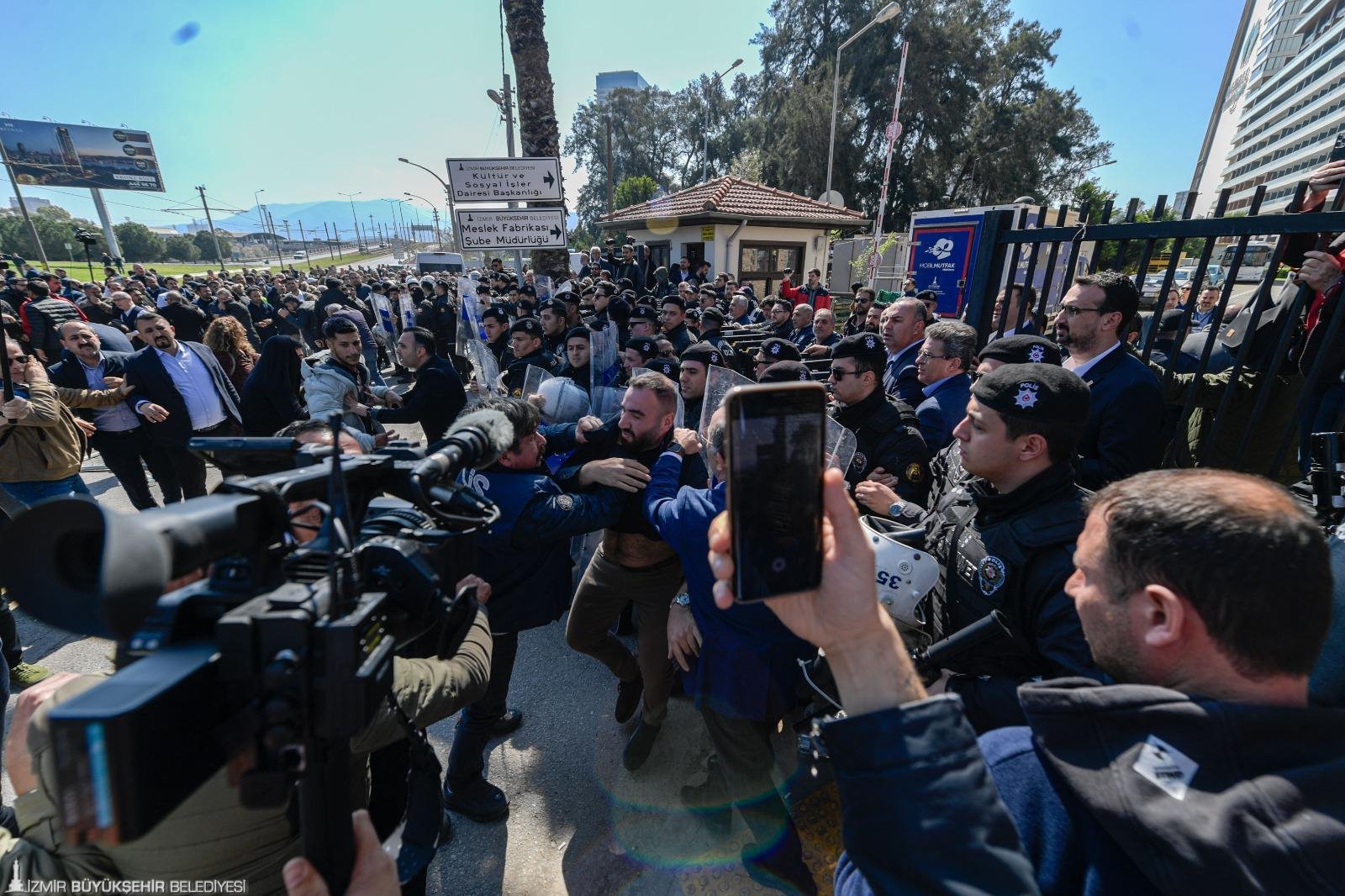 Mülkiyeti İzmir Büyükşehir Belediyesi’ne ait olan ancak Vakıflar Genel Müdürlüğü tarafından el konulmak istenen Meslek Fabrikası binası, sabah saatlerinde polis ablukasına alındı. Giriş çıkışlara kapatılan binada polis nezaretinde tespit çalışmaları başlatıldı. İşlem öncesinde belediye tarafına herhangi bir tebliğde bulunulmadığı belirtildi. İzmir Büyükşehir Belediyesi hukukçuları yapılan işleme usulsüz olduğu gerekçesiyle itiraz etti. Polis ablukasındaki binada eğitimlerde kullanılan teknik malzemelerin uzman personel beklenmeden söküldüğü de ifade edildi. Dünya Sağlık Örgütü’nün “Tek Sağlık Zirvesine” konuşmacı olarak davet edildiği için yurt dışında bulunan İzmir Büyükşehir Belediye Başkanı Dr. Cemil Tugay, programını yarıda keserek İzmir’e dönme kararı aldığını açıkladı.