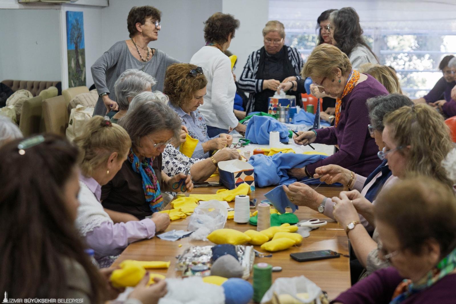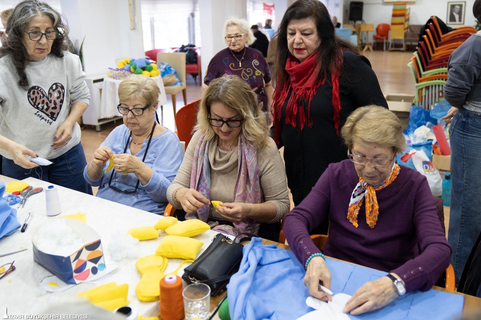 Merkez üyesi 73 yaşındaki Meral Doğan “Burada bebeklere oyuncak dikiyoruz. Bunun için kendimle gurur duyuyorum. Çocukları çok severim ve onlar için ne lazımsa her an ne gerekiyorsa yapmaya hazırım. Onlar için daha güzel günler olmasını istiyorum. Bu oyuncaklarla oynayacaklar inşallah” derken, 75 yaşındaki Yılmaz Yurdaer ise “Burada İzmir 95 projesi için bebeklere oyuncaklar ayarlıyoruz. Etkinliğe katkımız olsun diye kadın üyelere yardımcı oluyoruz. Bir katkımız olursa ne mutlu bize. Bebeklerimize yardımcı olmak bizi mutlu ediyor” ifadelerini kullandı.